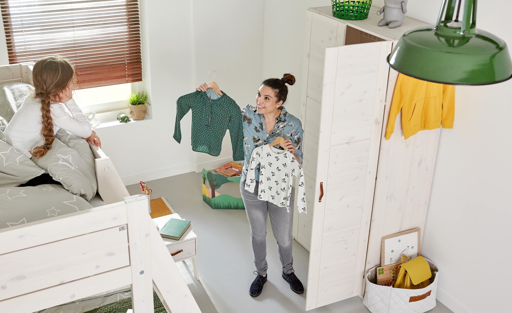 Kleine Kinder haben oft Angst vor einem allzu wuchtigen Kleiderschrank. Hier kann es gut sein, diesen erstmal so zu wählen, dass er zur Grösse des Kindes passt. Allerdings reicht der Platz dann kaum, sobald das Kind grösser wird.