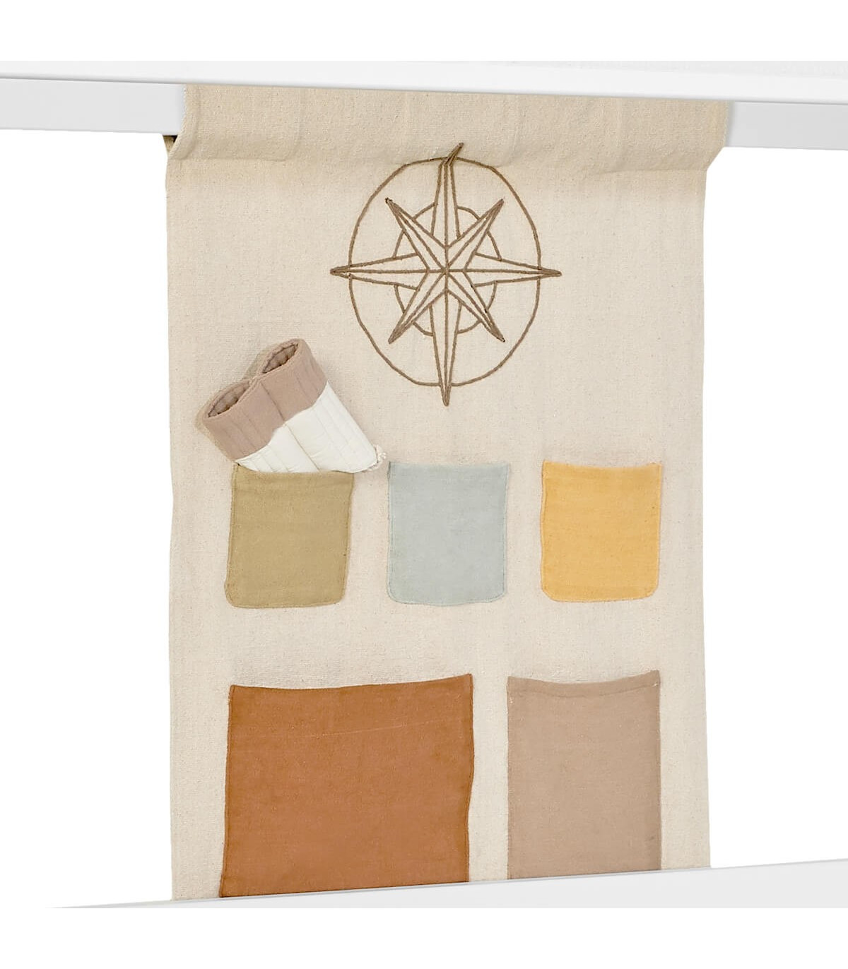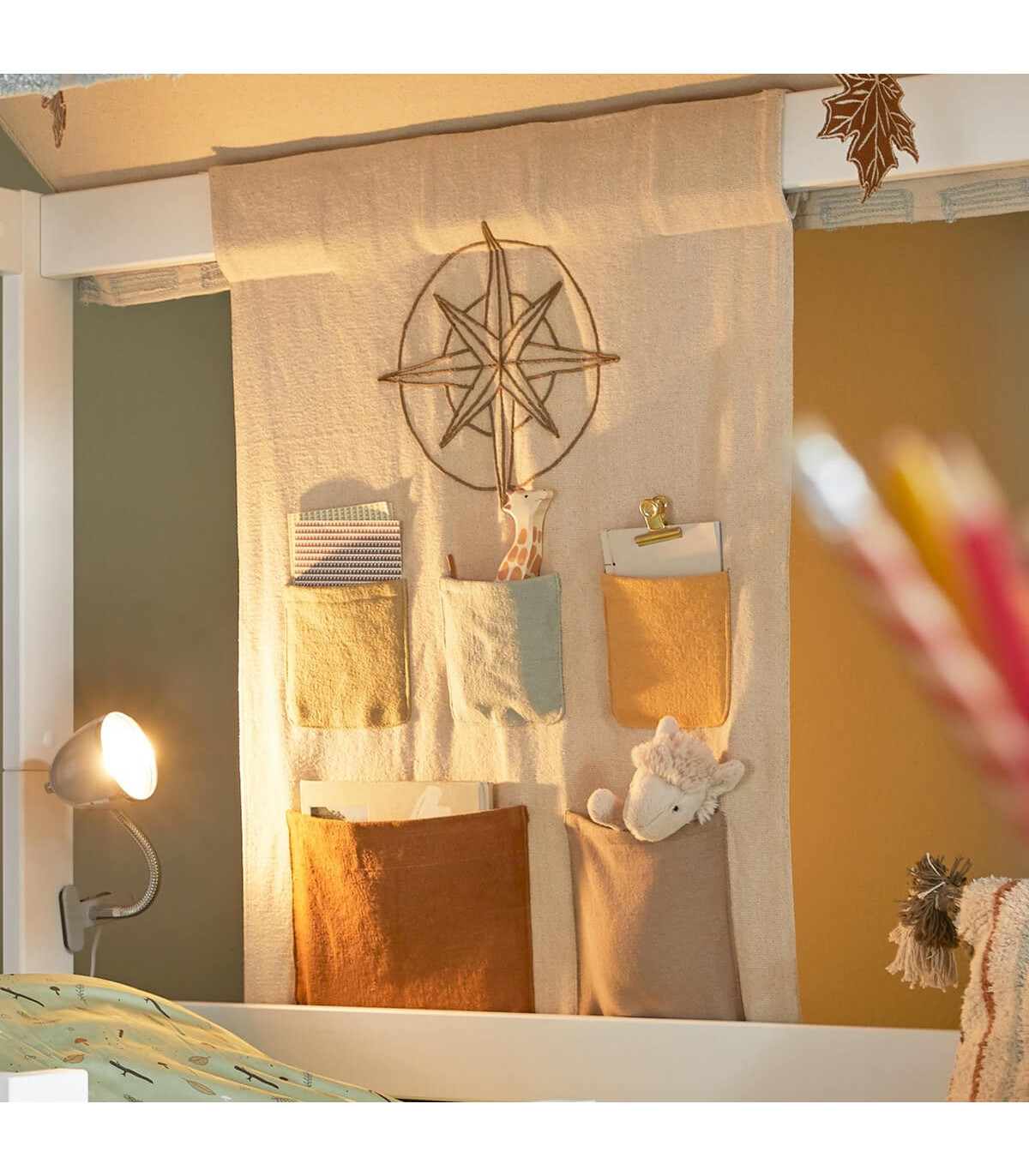 Diese praktische Rückwand mit Taschen aus dem Thema CANOE ADVENTURE können Sie wie einen Taschenbügel an der Rückseite Ihres Bettes anbringen. So haben Sie einen cleveren Stauraum direkt in Ihrem Bett. Dieser Artikel wurde in Zusammenarbeit mit Lorena Canals, der Erfinderin des Konzepts der waschbaren Teppiche, entworfen. Hergestellt aus 100 % natürlicher Baumwolle und Farbstoffen, um Haltbarkeit nach dem Waschen, Komfort und Sicherheit im Alltag zu gewährleisten.