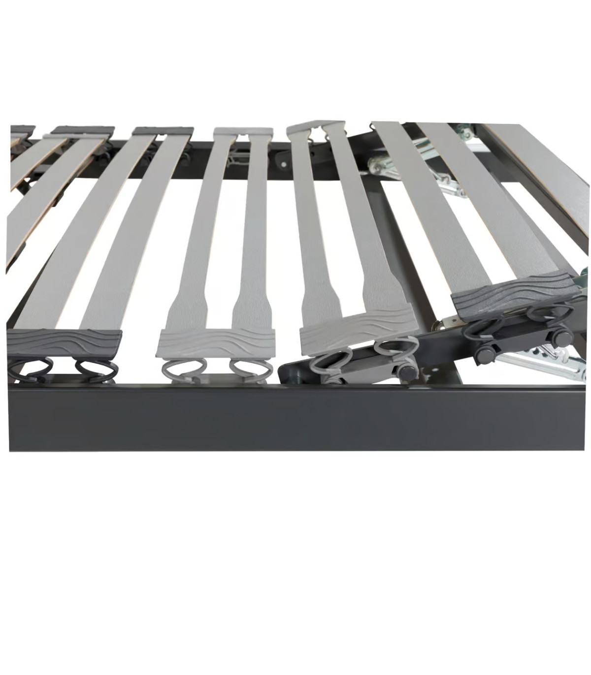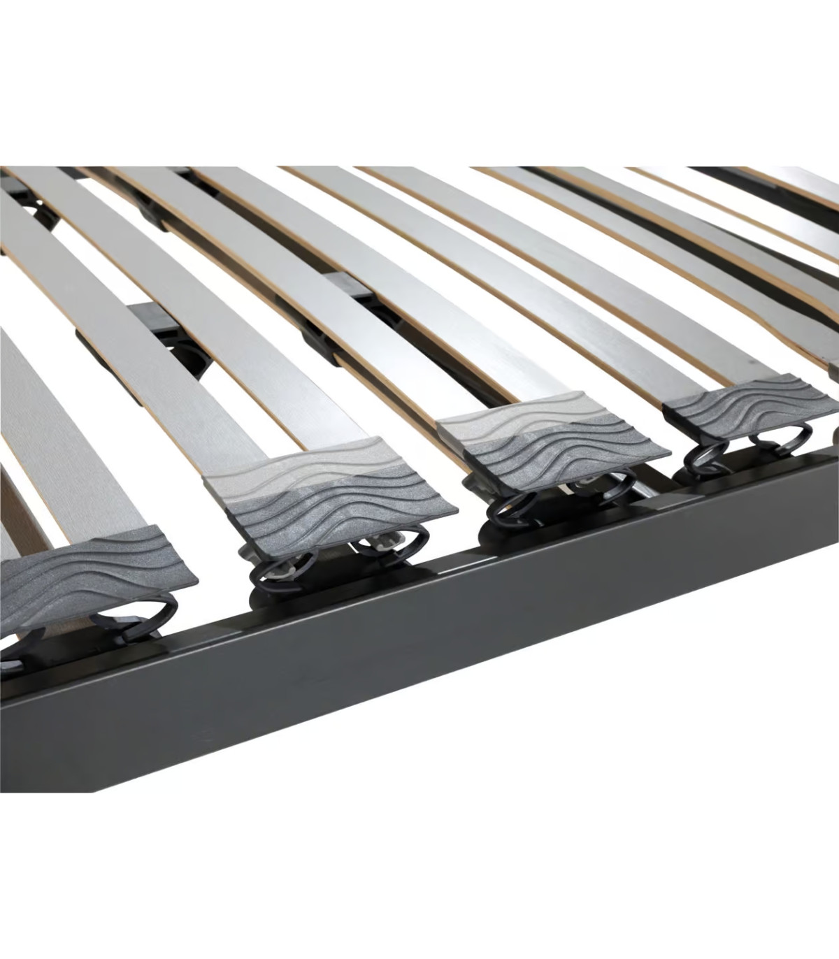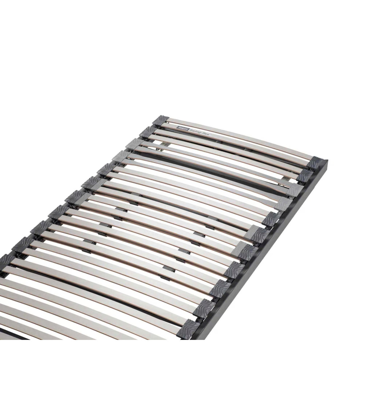 Der Swing-flex A Lattenrost besteht aus 30 hochwertigen Buchenholzleisten, die für eine optimale Federung und Stabilität sorgen. Die Federelemente aus TPE-E passen sich flexibel den Bewegungen des Körpers an und sorgen für eine gleichmässige Druckverteilung. Der Rahmen aus foliertem Schichtholz ist robust und langlebig.