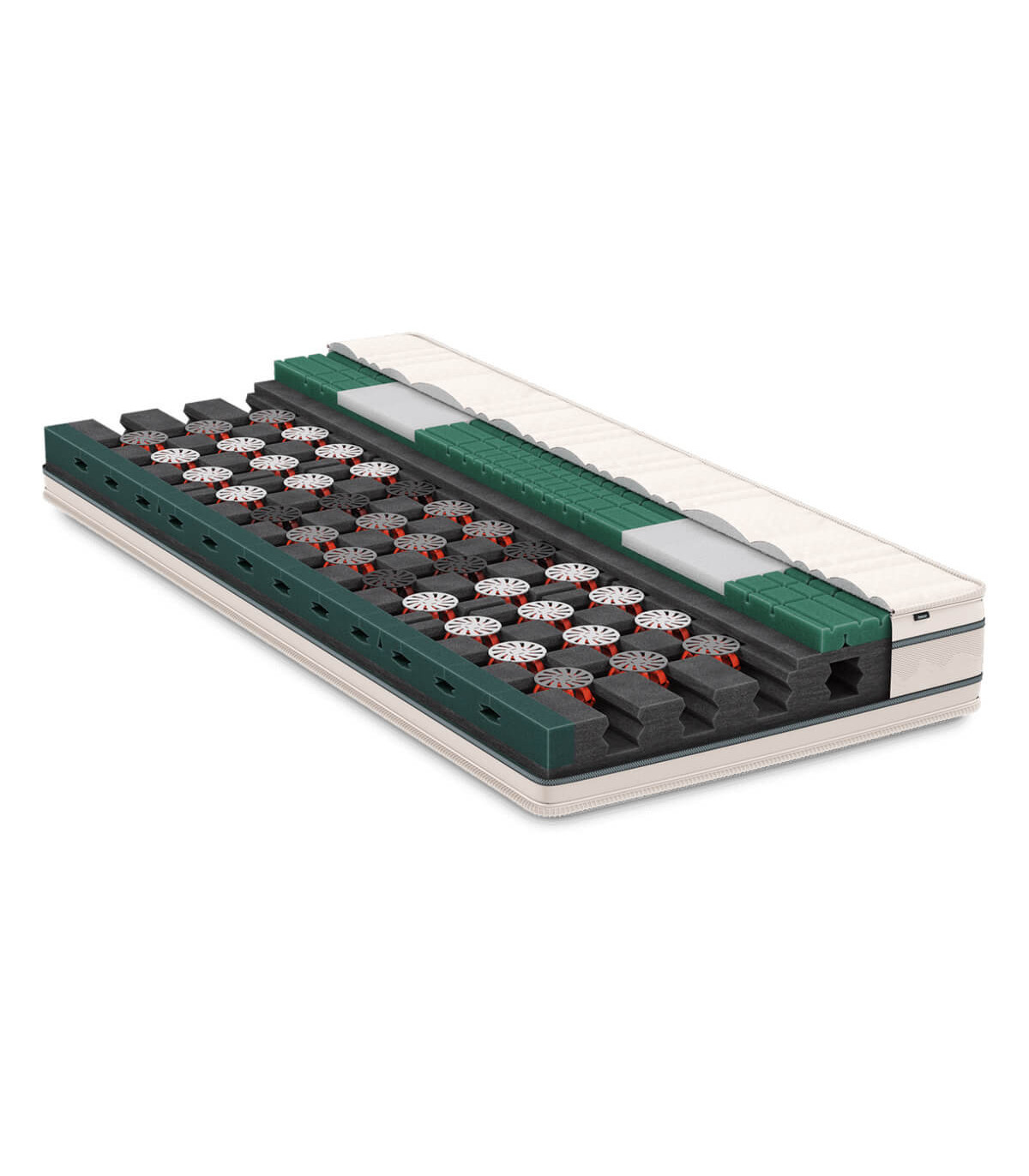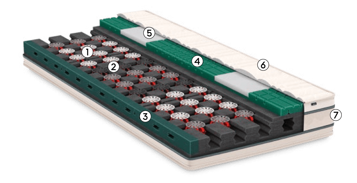 Kern mit Triple-Body-Support(TBS)-Federelementen und das dreidimensionale Belüftungssystem sorgen für Ihr perfektes Bettklima und eine ausgewogene Lagerung des Körpers.