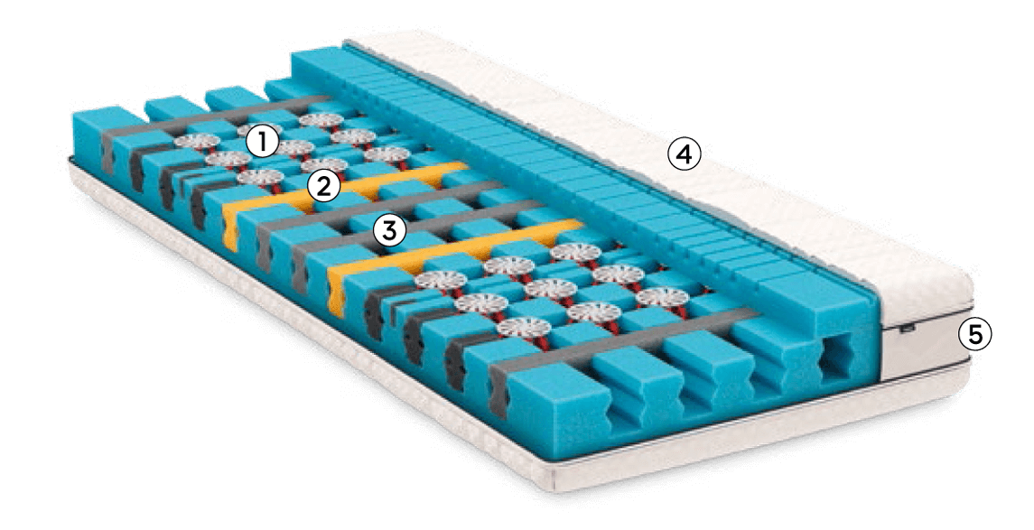 Kern mit Triple-Body-Support(TBS)-Federelementen in der Schulter in Kombination mit komfortabler Stützung der Lordose und Hüfte.