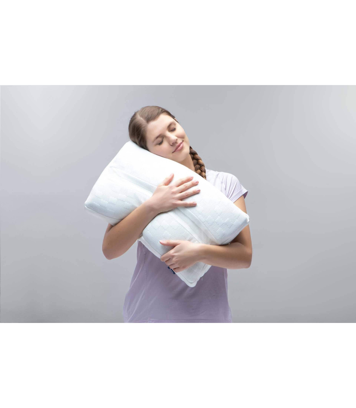 Ein atmungsaktives Stützkissen aus Gelschaum mit einer einzigartigen Klimazone für optimalen Feuchtigkeits- und Temperaturausgleich. Es entlastet den Kopf und stützt den Nacken, und ist höhenverstellbar für verschiedene Körpertypen und Schlafpositionen.