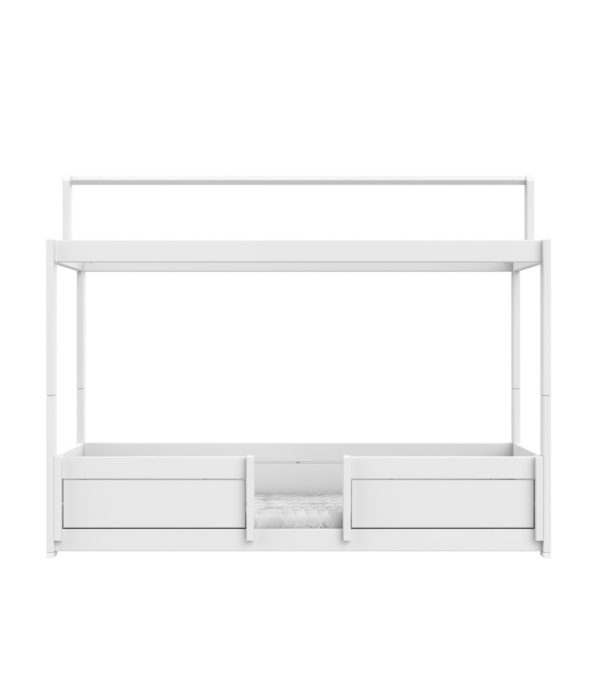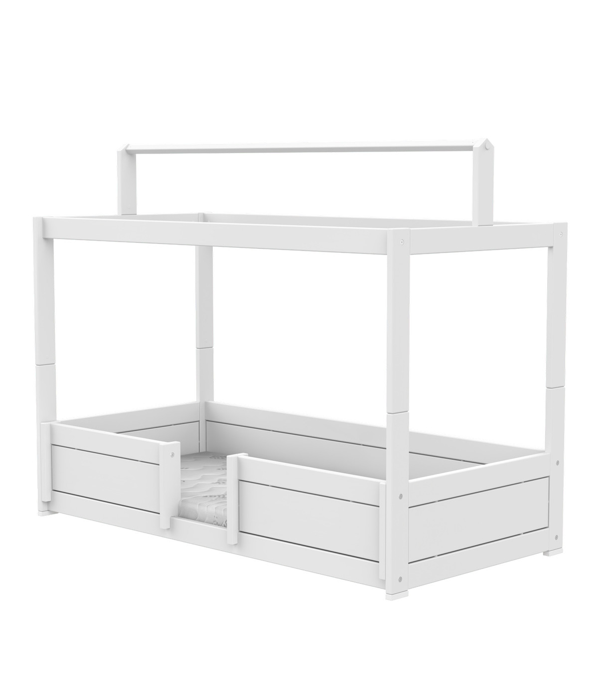 Das Bett für ein Leben! Dieses coole Kinderbett basiert auf dem 4-in-1-Bettsystem mit einer Dachkonstruktion, an der ein Stoffdach aufgehängt werden kann. Passen Sie es an die Wünsche Ihres Kindes an. Beginnen Sie tief am Boden, mit einem einfachen Einstieg und einem Sicherheitsschutz, damit Ihr Kind einen sicheren Ort zum Spielen und Schlafen hat. Wenn Ihr Kind älter wird, können Sie das Bett mit den mitgelieferten Teilen in eine der vier anderen Kombinationen umbauen.