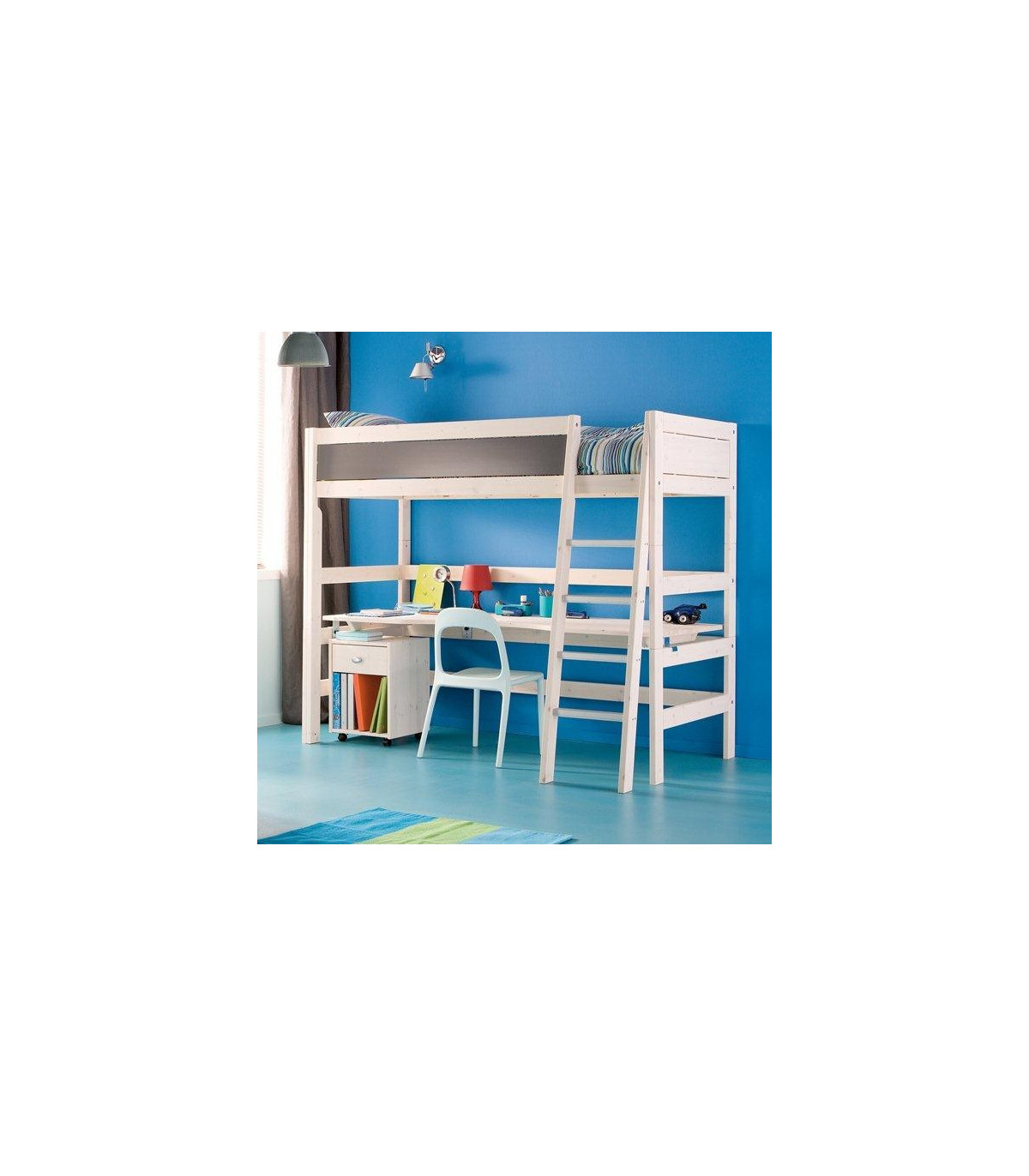 Lifetime-Kidsrooms Hochbett LIVIA 90x200 cm mit Schrägleiter und Roll-Lattenrost whitewash