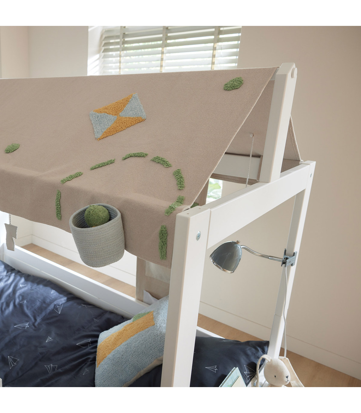 Kombinieren Sie das Bett mit unseren vielfältigen Stoffdächern und Rückwänden, wie z.B. Essence, Canoe Adventure, Panda Paradise oder Happy Rabbit, um es individuell zu gestalten!