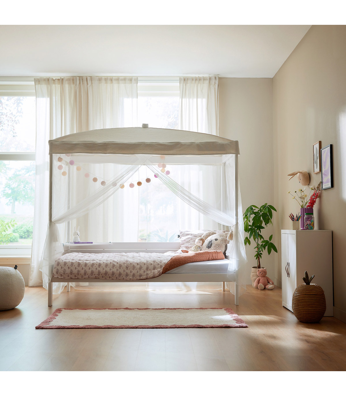 Suchen Sie ein Bett, das mit Ihrem Kind mitwächst? Unser 4-in-1-Bett mit Stoffdach ist die perfekte Lösung für jedes Alter – vom Kleinkind bis zum Teenager. Dank vier flexibler Umbaumöglichkeiten passt es sich immer den aktuellen Bedürfnissen an.