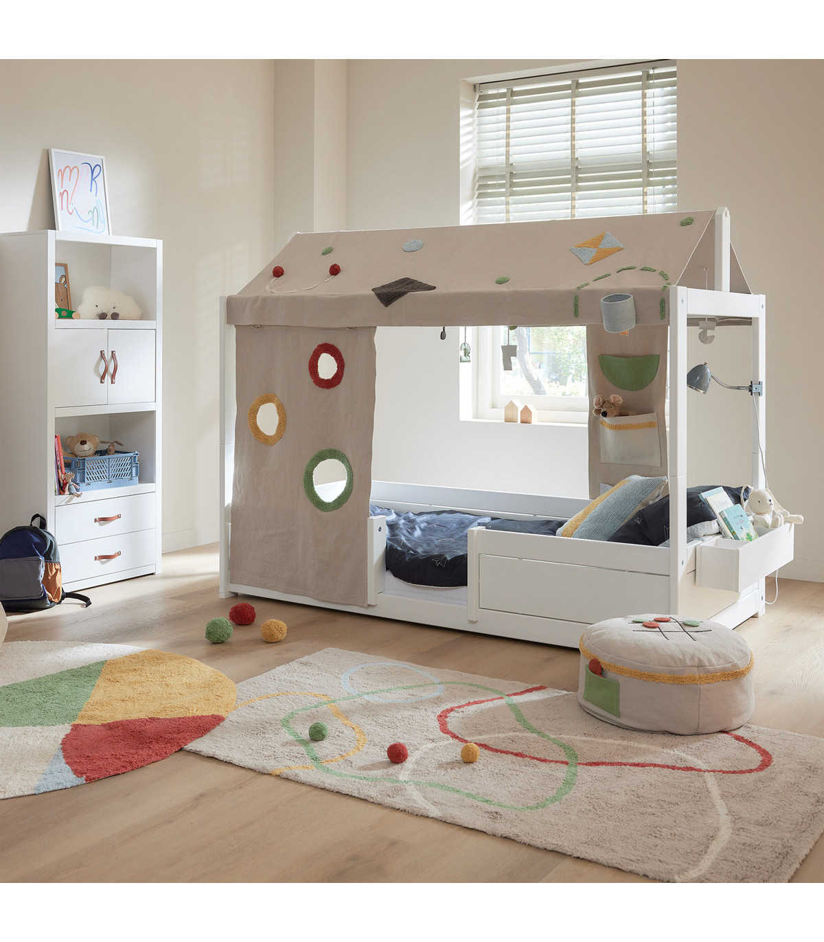 Wenn das Bett zum Mittelpunkt des Spiels wird, verwandeln Sie es im Handumdrehen in ein halbhohes Bett. Der zusätzliche Raum darunter schafft eine erweiterte Spielzone. Gestalten Sie diesen Bereich ganz nach den Wünschen Ihres Kindes – mit einer Spielmatratze, cleveren Aufbewahrungslösungen, Bücherregalen oder einem verspielten Spielvorhang.