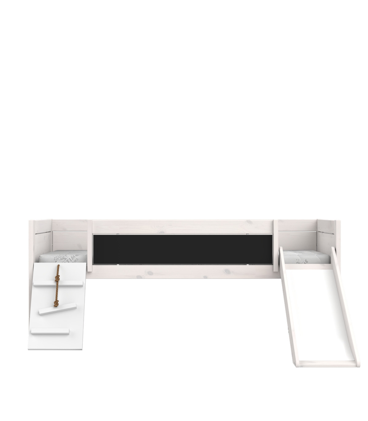 Lichte Höhe: 44 cm / Front: Kreidetafeldruck auf weiss lackierter Platte / Rutsche Art. 176 und die Platte der Laufplanke Art. 174 sind immer weiss lackiert.