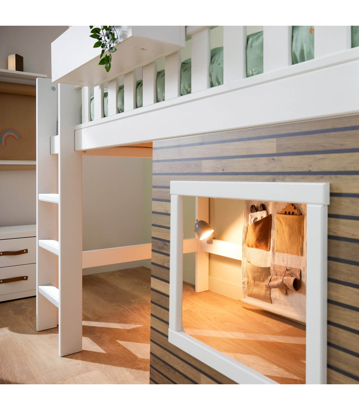 Das LIMITED EDITION BETT 2023 verfügt auch über die nachhaltigen LIFETIME Kidsrooms® Eigenschaften, da es auf eine klassische Basisbetthöhe umgebaut werden kann, wenn das Kind das Interesse an dem halbhohen Bett oder dem Spielhaus unter dem Bett verliert. Auf diese Weise kann das Bett viele Jahre lang halten.