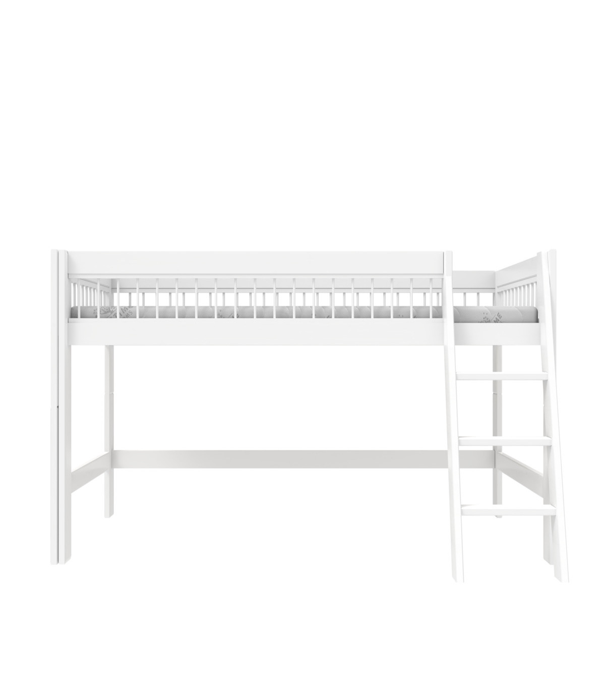 Mit diesem mittelhohen Bett schaffen Sie die ideale Umgebung, in der Kinder unter dem Bett spielen können und oben komfortabel schlafen können. Besonders in kleinen Kinderzimmern, in denen Platz für Spiel und Spaß benötigt wird, erweist sich das mittelhohe Bett als äußerst praktisch. Es befreit wertvollen Raum unter dem Bett, der für Spiele und Freizeitaktivitäten genutzt werden kann.