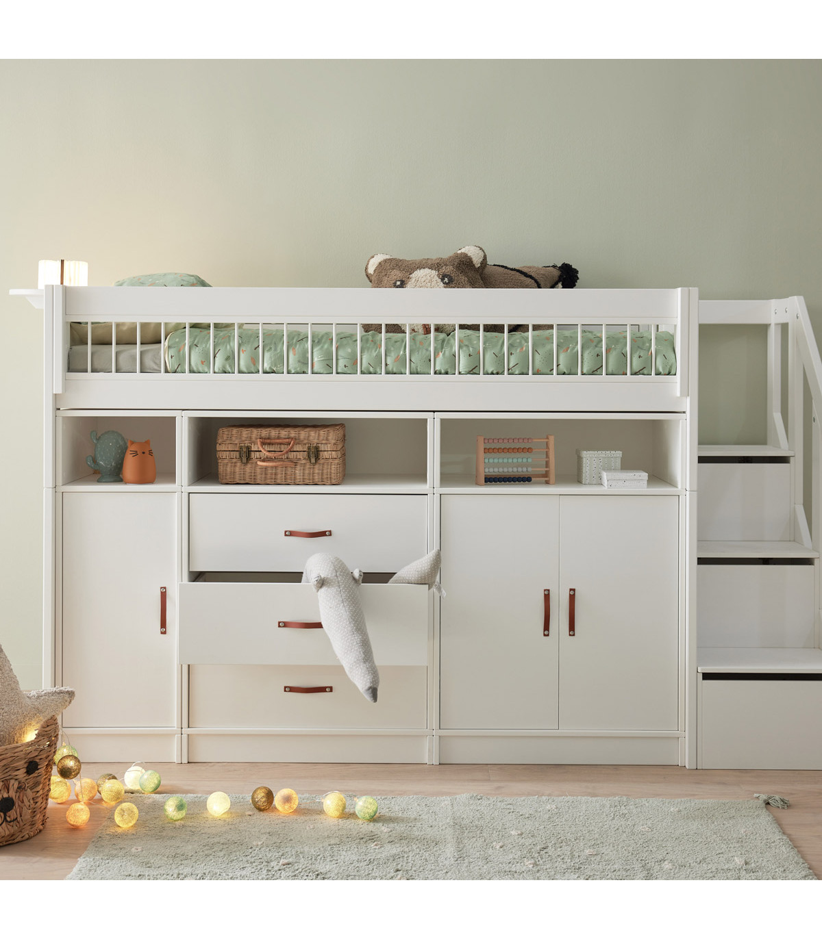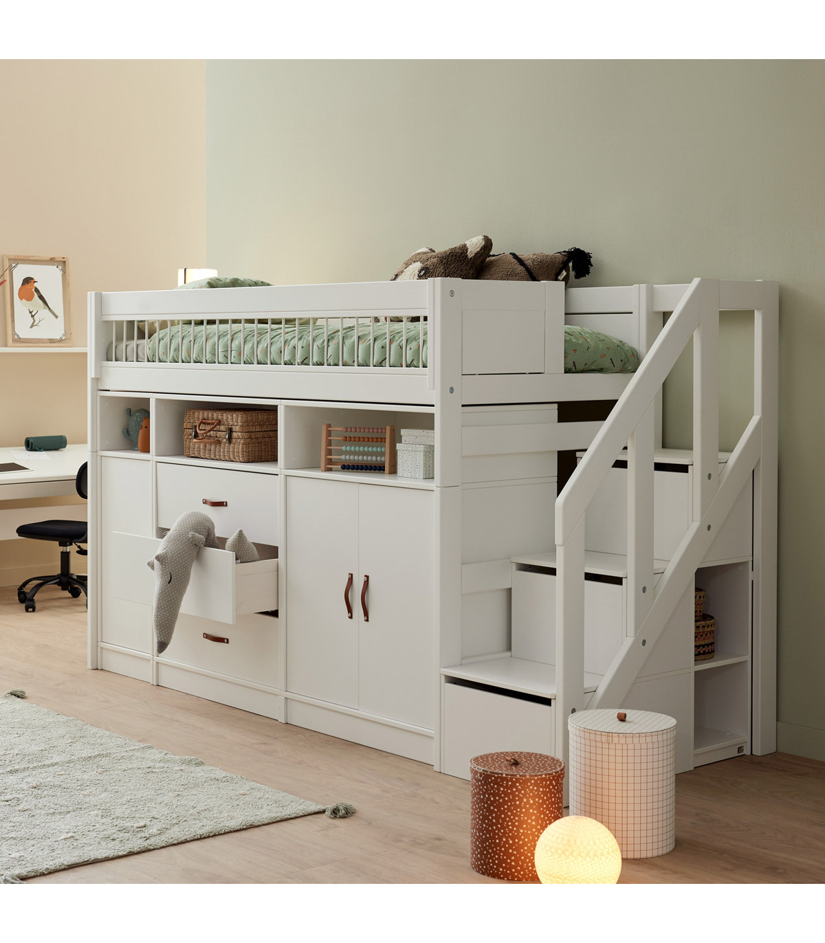 Lifetime ALL IN ONE Halbhochbett mit Trittleiter 152 cm, Deluxe-Lattenrost whitewash