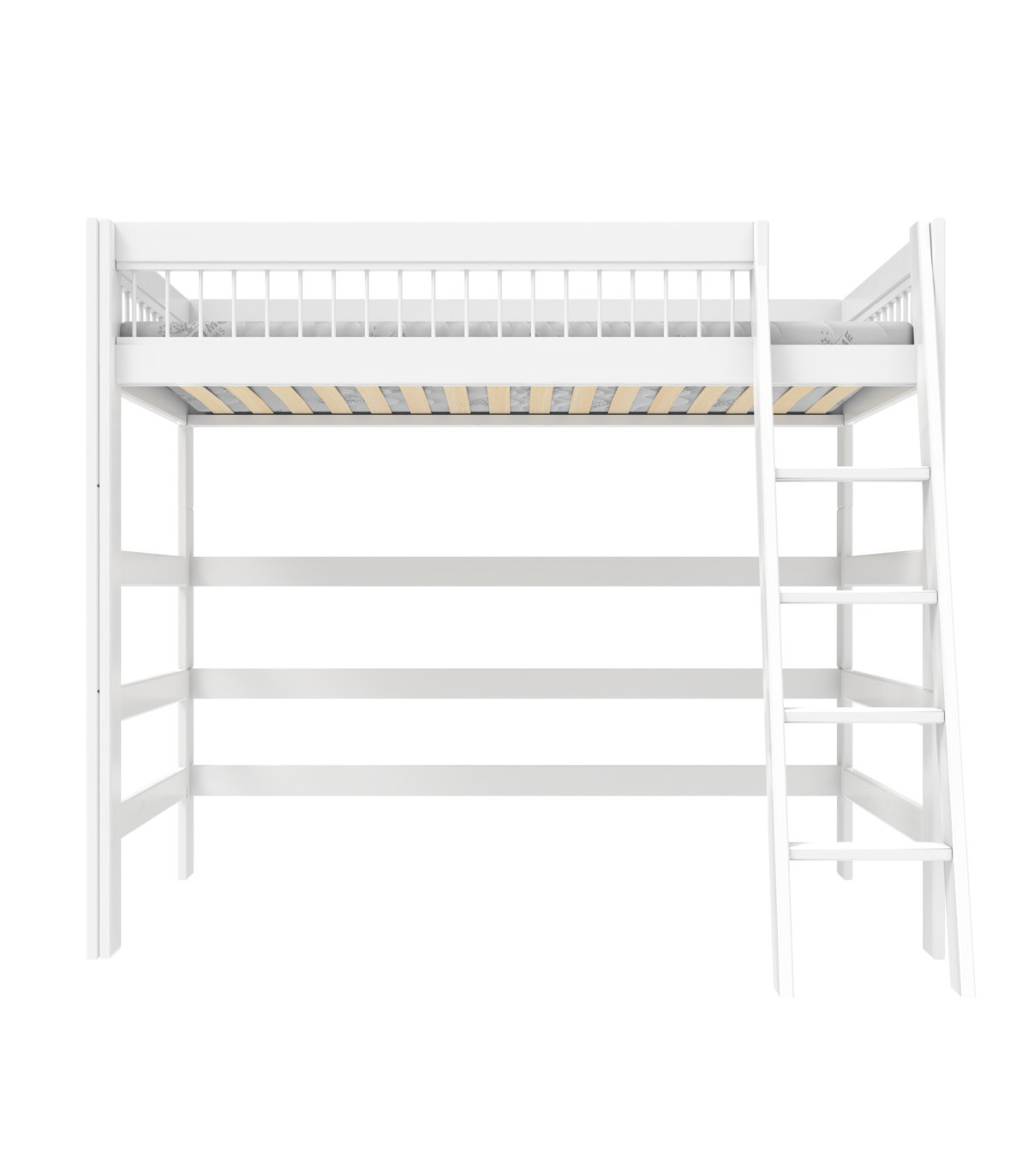 Um den verfügbaren Raum optimal zu nutzen, bieten wir ein Hochbett an, welches zusätzlichen Platz unter dem Bett schafft. Dies könnte als eine Alternative zu einem Schlafboden dienen.