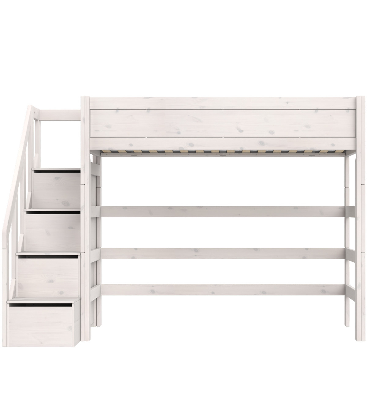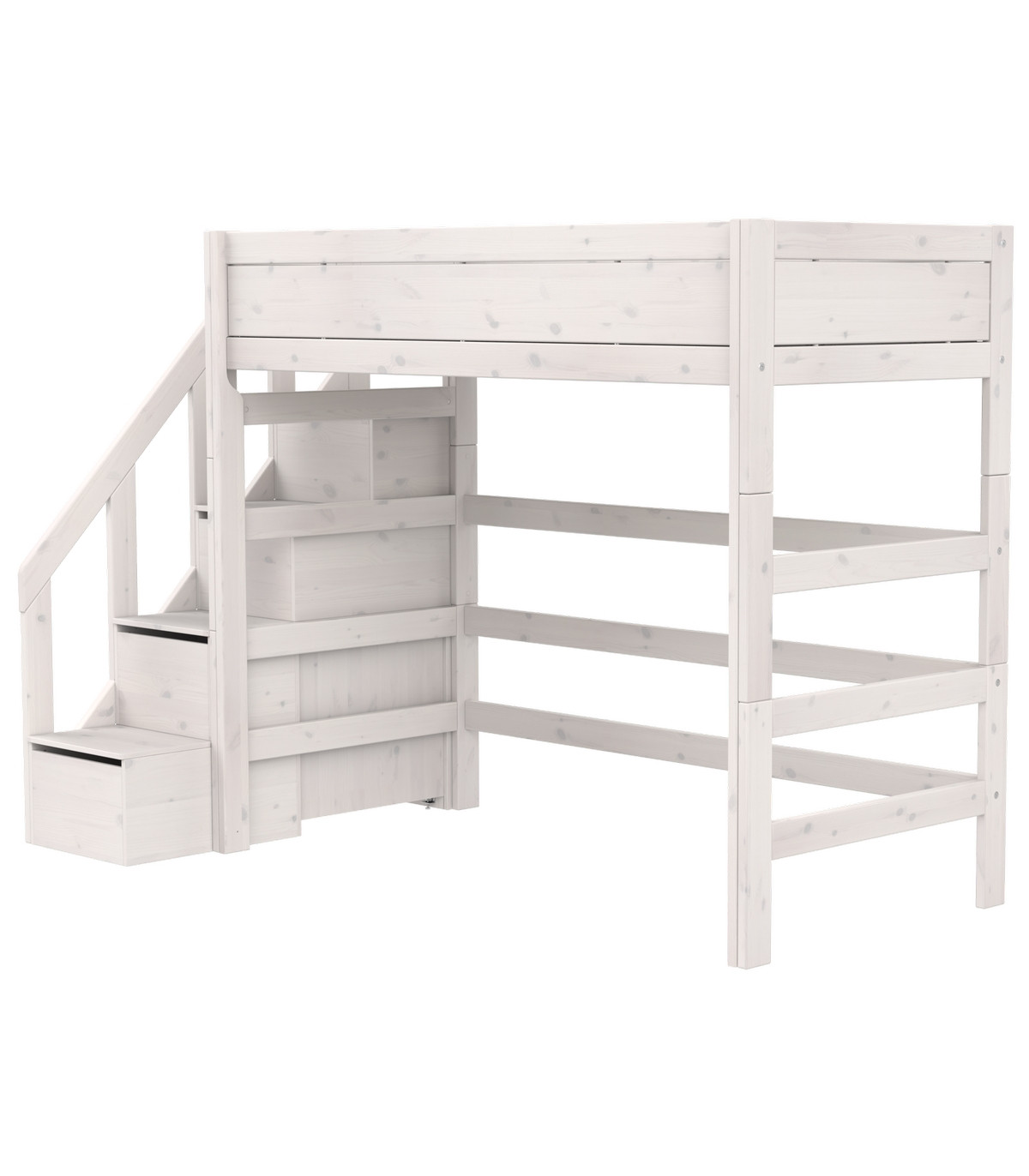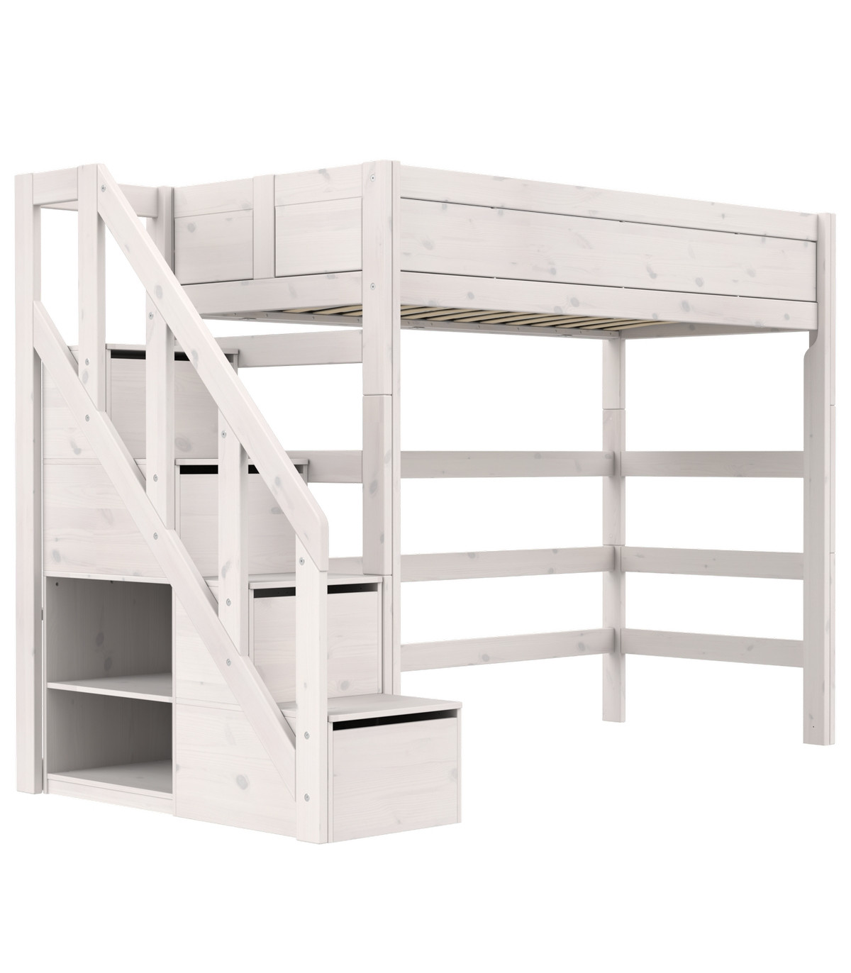 Lifetime Kidsrooms Hochbett mit Treppe und Stauraum, Deluxe Lattenrost Whitewash