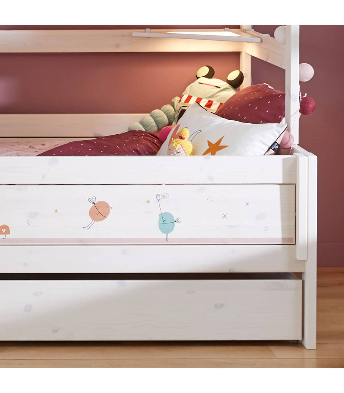 Oberes Bett mit Absturzsicherung vorne und Hinten