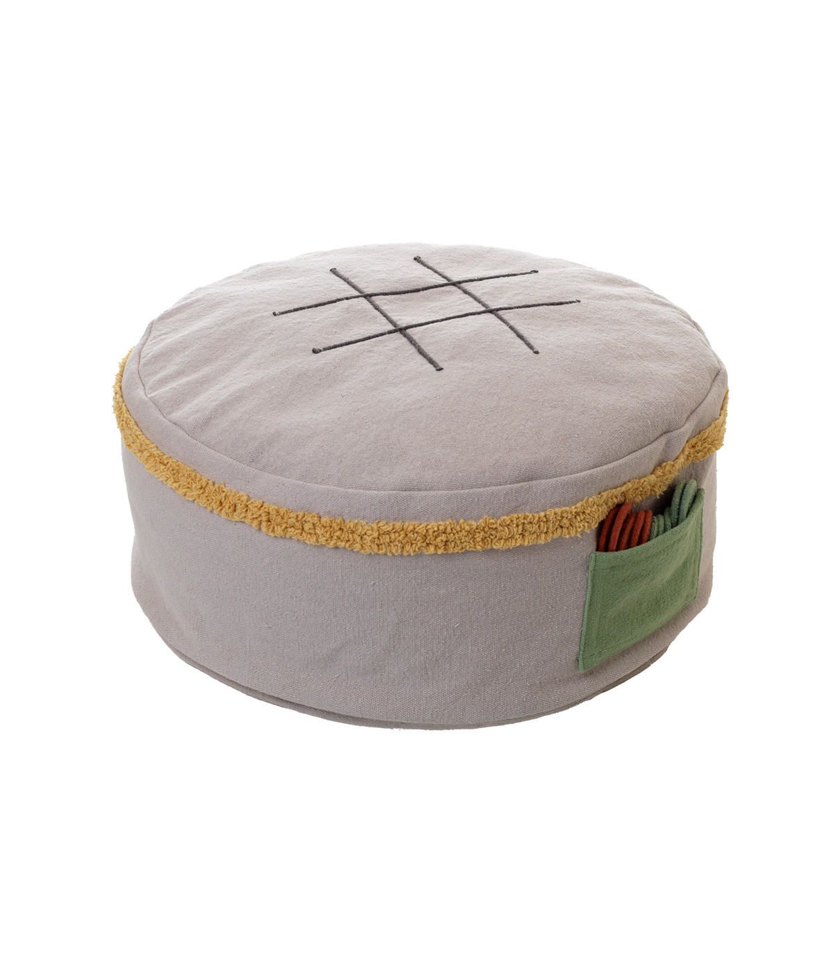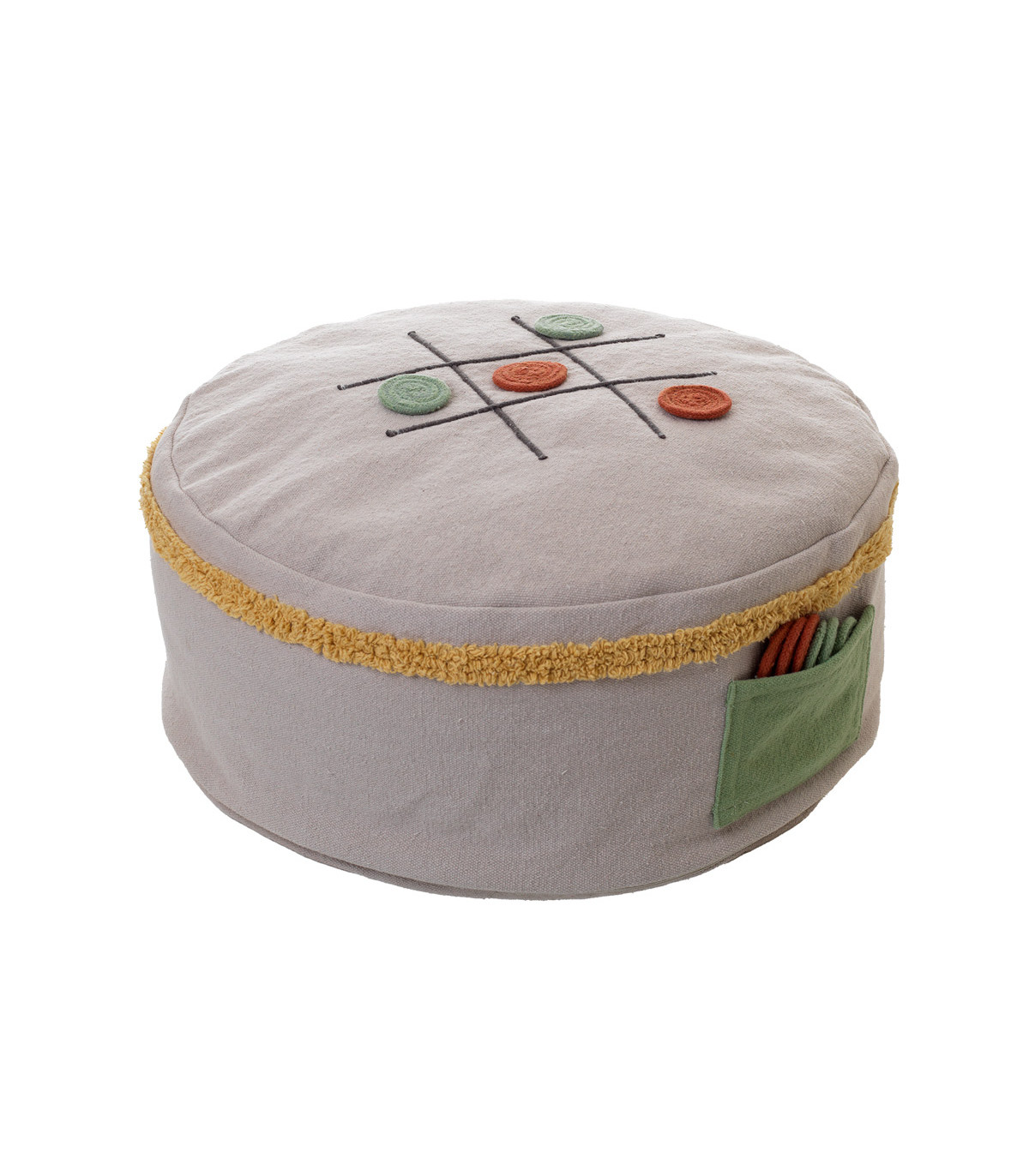 Entdecken Sie den Lifetime Tic-Tac-Toe Puff - Olympic Dreams, eine innovative Kombination aus stilvollem Sitzmöbel und unterhaltsamem Spiel! Dieser farbenfrohe Pouf bietet nicht nur eine bequeme Sitzgelegenheit, sondern auch ein interaktives Tic-Tac-Toe-/„Drei gewinnt“-Spiel, das mit Baumwollmünzen gespielt wird. Die praktische Seitentasche ermöglicht es Ihnen, die roten und grünen Münzen sicher zu verstauen, wenn der Pouf als Sitzgelegenheit genutzt wird.