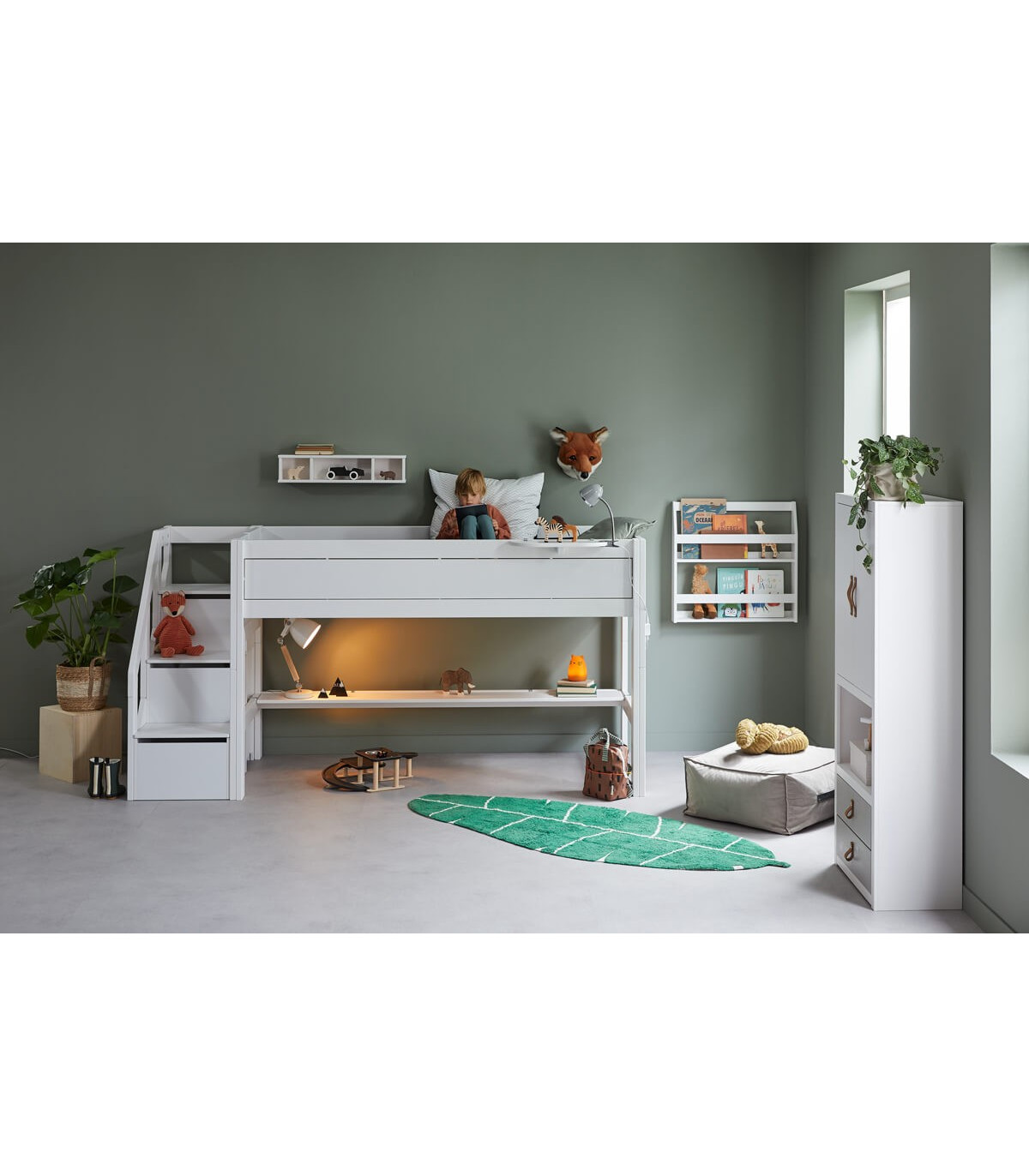 Lifetime Kidsrooms Halbhohes Bett mit Treppe und Deluxe Lattenrost 128 x 257 x 102 cm whitewash