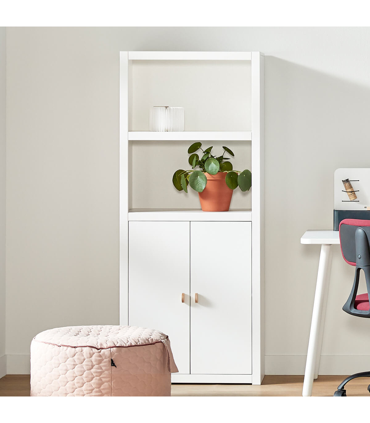 Es handelt sich um eine Reihe von modularen Möbeln, die frei stehen. In unserer Auswahl an Büromöbeln finden Sie auch gute Stauraumlösungen, die mit dem Schreibtisch kombiniert werden können.