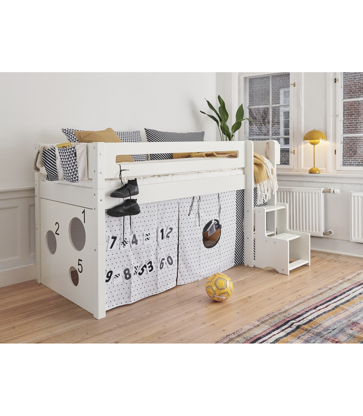 Für extra Sicherheit kommt dieses Bett mit ¾ Absturzsicherung, sodass das Kind, das immer noch zu klein für offenes Bett ist, immer sicher ist.