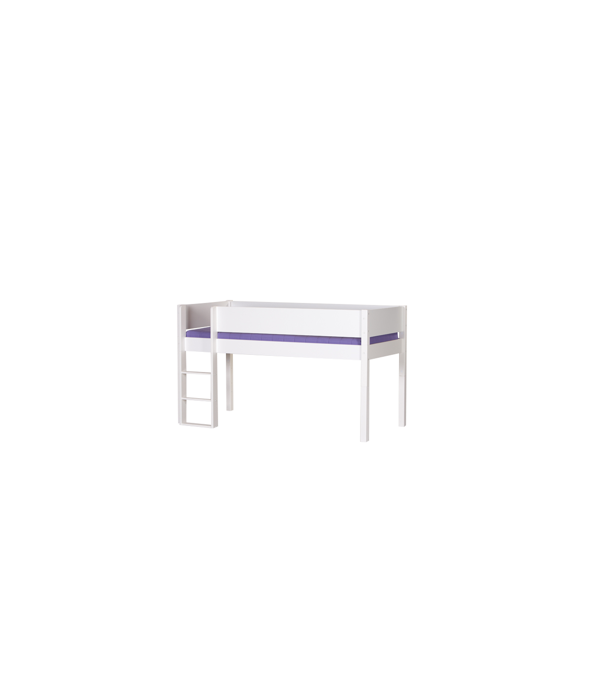 Manis-h FREJ Halbhohes Bett 90x200 cm mit Lattenrost und Aufbewahrung Snow white