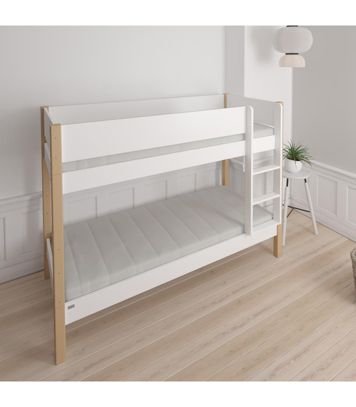 Manis-h Etagenbett HODER mit Lattenrost 159x210x104 cm Snow white mit Buche Pfosten