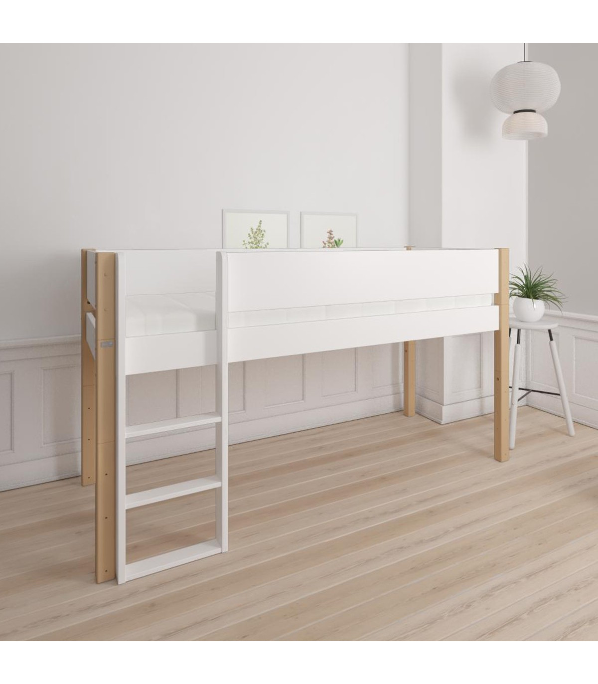 • 1x Manis-h Pfosten für Halbhochbett und Etagenbett inkl. gerader Leiter Snow white mit Buche Pfosten Art. 10100-1110