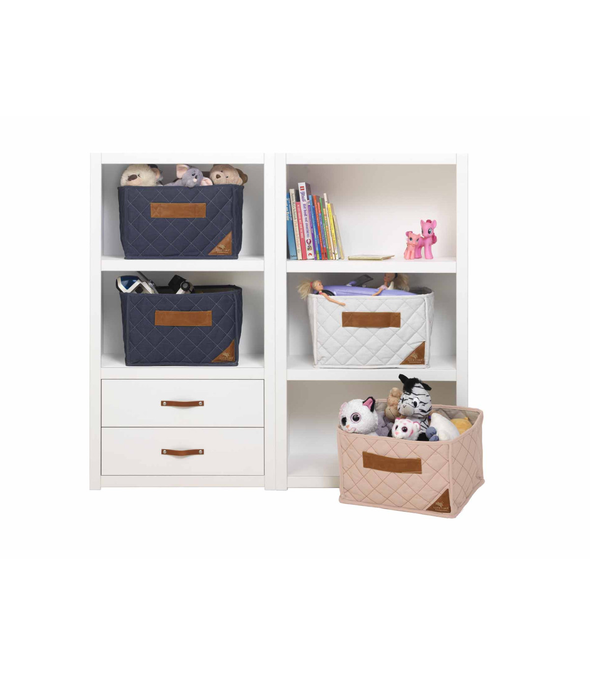 Ein Regal aus dem LIFETIME Regal Programm, das mit den anderen Regal für guten Stauraum sorgt und damit man das Zimmer immer schön aufräumt halten kann, wenn man möchte. Schubladen und Türen in verschieden Farben geben dem Kinderzimmer noch mehr Möglichkeiten der Farbgestaltung.