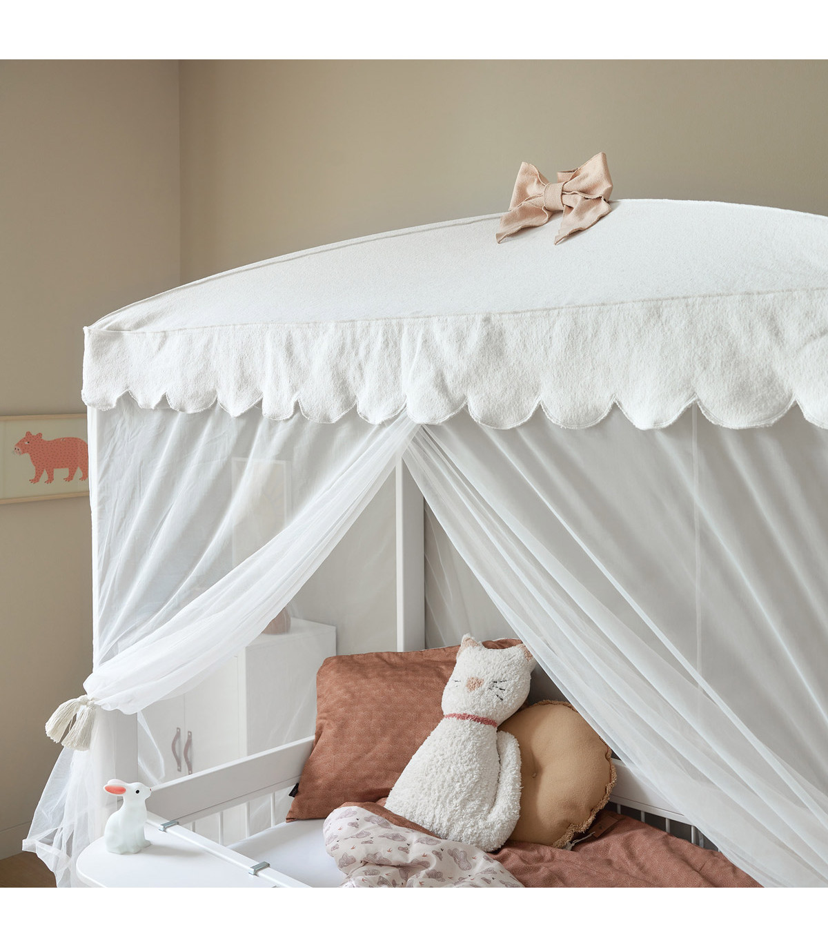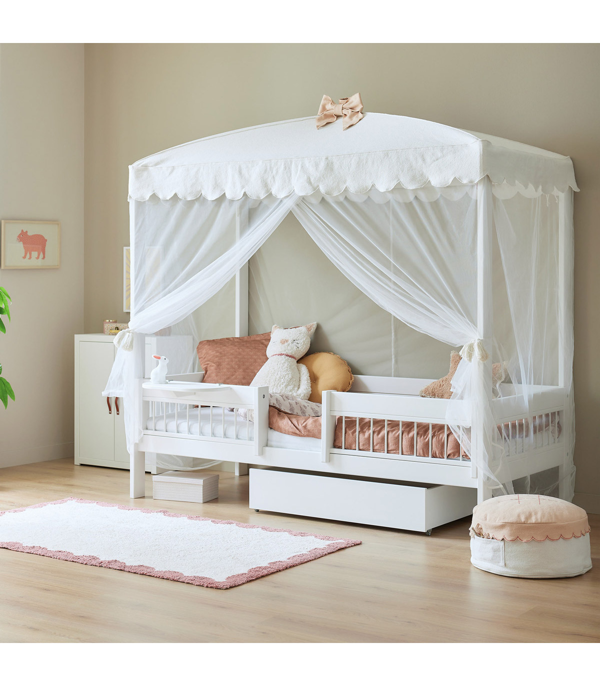 Der bezaubernde Himmel „Cat & Bow“ von Lifetime Kidsrooms verwandelt jedes Himmelbett in eine gemütliche Oase. Mit seiner charmanten Schleife, den rosa Pompons und dem niedlichen Katzenanhänger, der an der Innenseite des Himmels befestigt werden kann, bringt er eine verspielte Note in das Kinderzimmer. Dieser Himmel wurde in Zusammenarbeit mit der renommierten Designerin Lorena Canals entworfen und besteht aus hochwertigem, natürlichem Baumwollstoff, kombiniert mit leichtem Netzstoff, der für eine angenehme Atmosphäre sorgt.