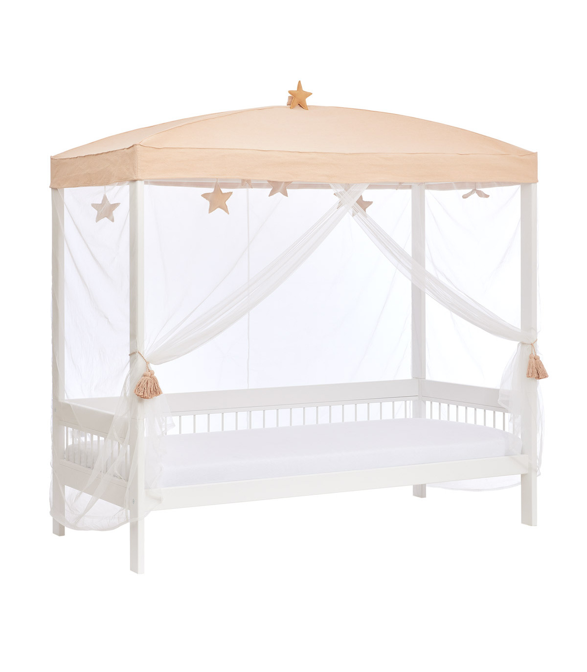 Mit dem inkludierten Sternenaufsatz und den liebevollen Aufhängern in Form von Sternen und Libellen wird das Bett zum Schauplatz für unvergessliche Träume und entspannende Momente. Der Himmel wurde in Zusammenarbeit mit der renommierten Designerin Lorena Canals entworfen, die für ihre umweltfreundlichen und handgefertigten Produkte bekannt ist. So können Sie sicher sein, dass Ihr Kind in einem gesunden und sicheren Umfeld schläft.