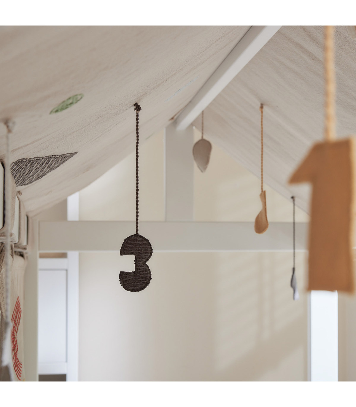 Die Zahlenanhänger von 0 bis 9, die unter dem Dach baumeln, fördern spielerisch die motorischen Fähigkeiten Ihres Kindes. Zudem lädt der integrierte Korb mit Pomponbällen zum Üben und Spielen ein. Holen Sie das Beste aus Ihrem Innenraum heraus und schaffen Sie ein verspieltes, sportliches Universum, das die Fantasie anregt.
