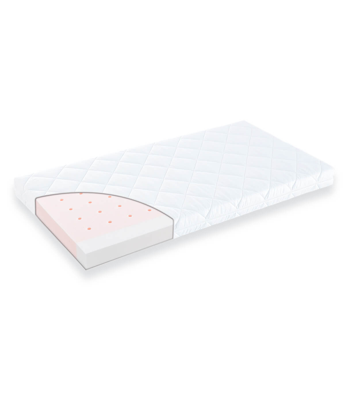 Belüftete Babymatratze mit Sicherheitstrittkanten für gesundes Schlafklima.