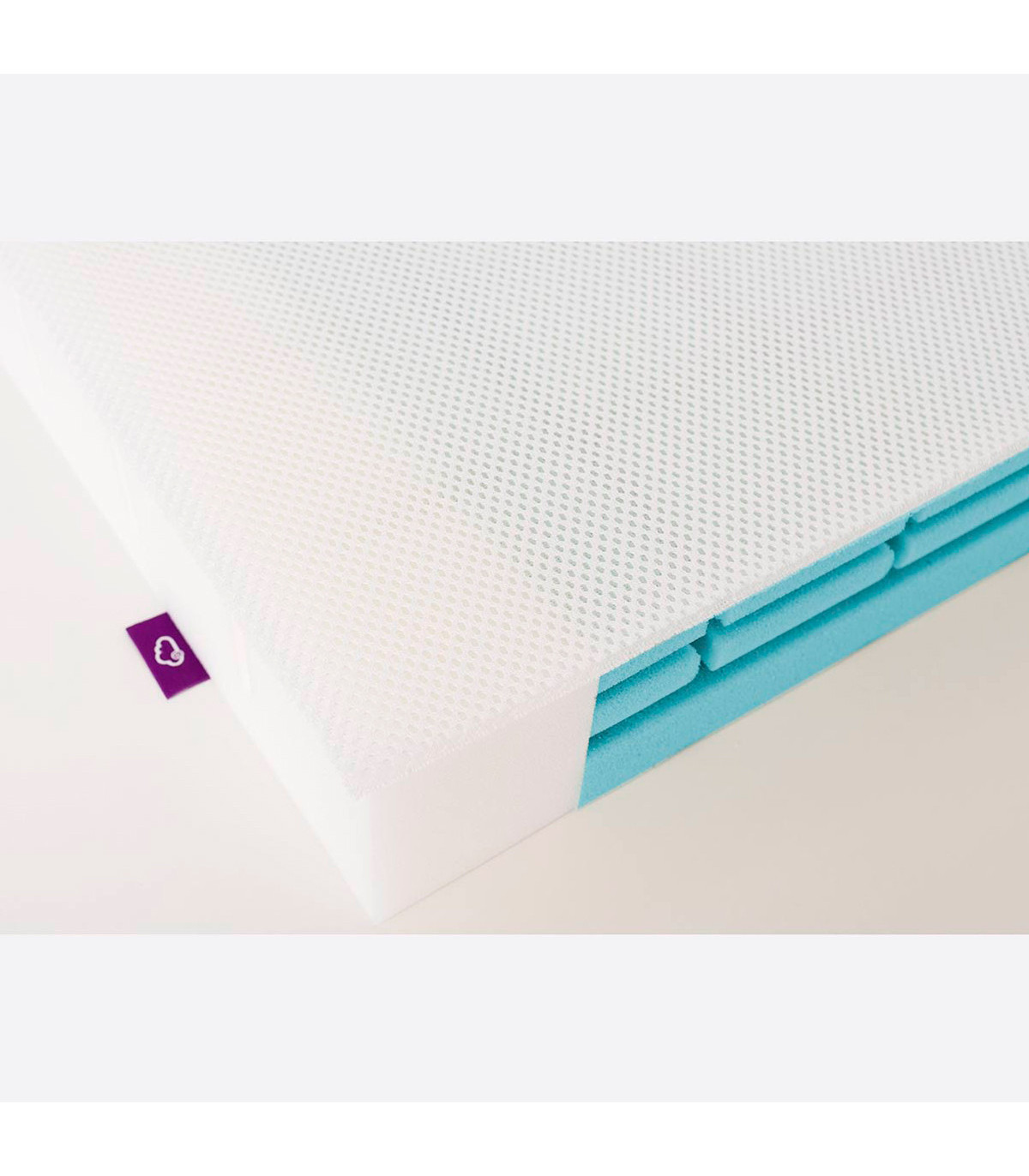 Gute Belüftung der Babymatratze durch atmungsaktives 3D-Luftpolstermaterial.