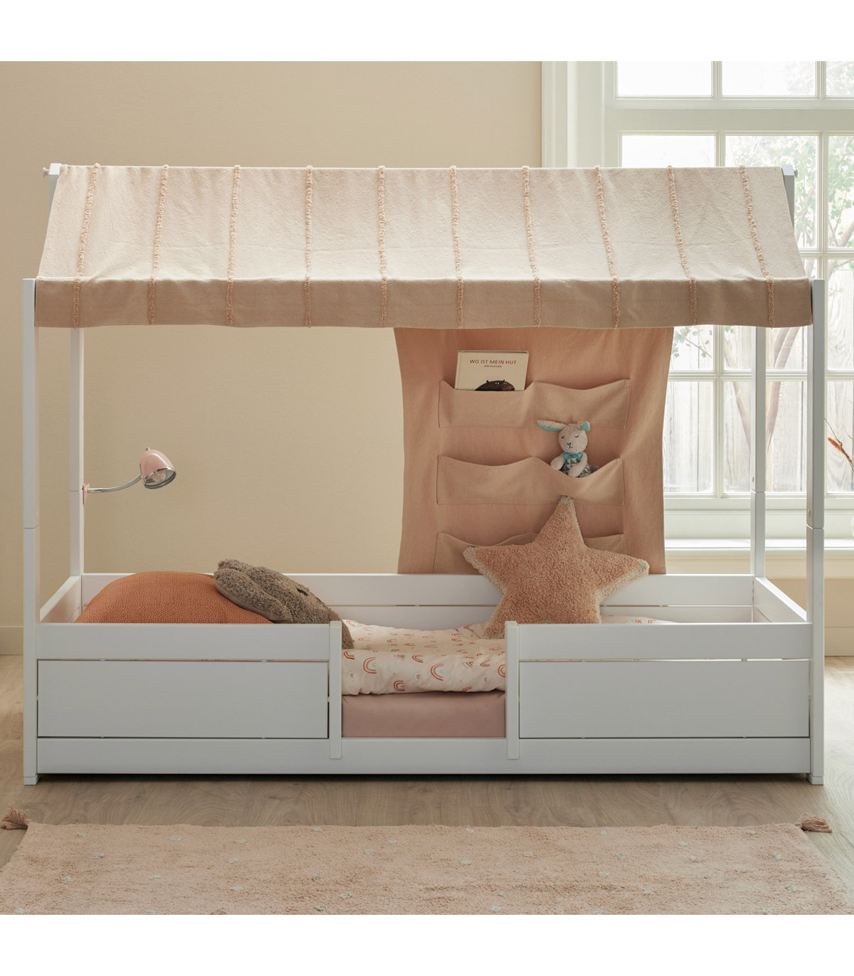 Bewahren Sie Ihre Sachen in diesem hübschen Betttaschen-Kleiderbügel von LIFETIME Kidsrooms auf. Der Taschenaufhänger kann an der Oberseite des Bettes angebracht werden, sodass Sie oder Ihr Kind bequem auf den Stauraum zugreifen können. Eine einfache und praktische Möglichkeit, Dinge im Bett aufzubewahren, ohne dabei Platz im Bett zu beanspruchen.