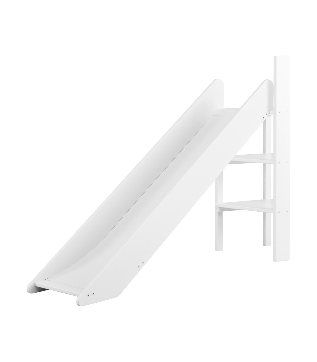 Der Leiterturm für die Rutsche Art. 172 findet zwischen den Leiterholmen einer geraden Leiter an einem Bett einen Halt. Diese wird gerne vorrangig für das halbhohe Bett genommen, kann aber auch an einem Mittel-Hochbett oder Hochbett eingesetzt werden. Die Rutsche kann an beiden Seiten des Turms schräg vom Bett weg montiert werden.