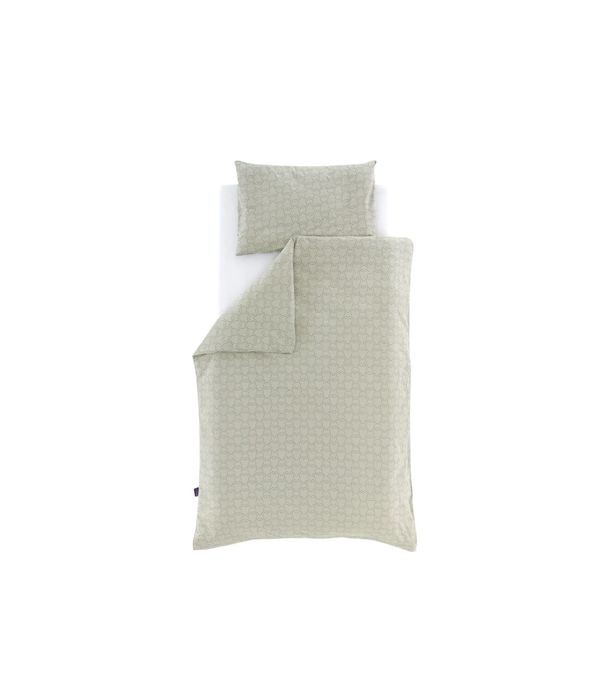 The two-piece set is particularly soft and gentle on baby's skin. The duvet cover has a practical zip at the foot end, while the pillowcase is equipped with a hotel fastener that makes it easy to put on and take off.