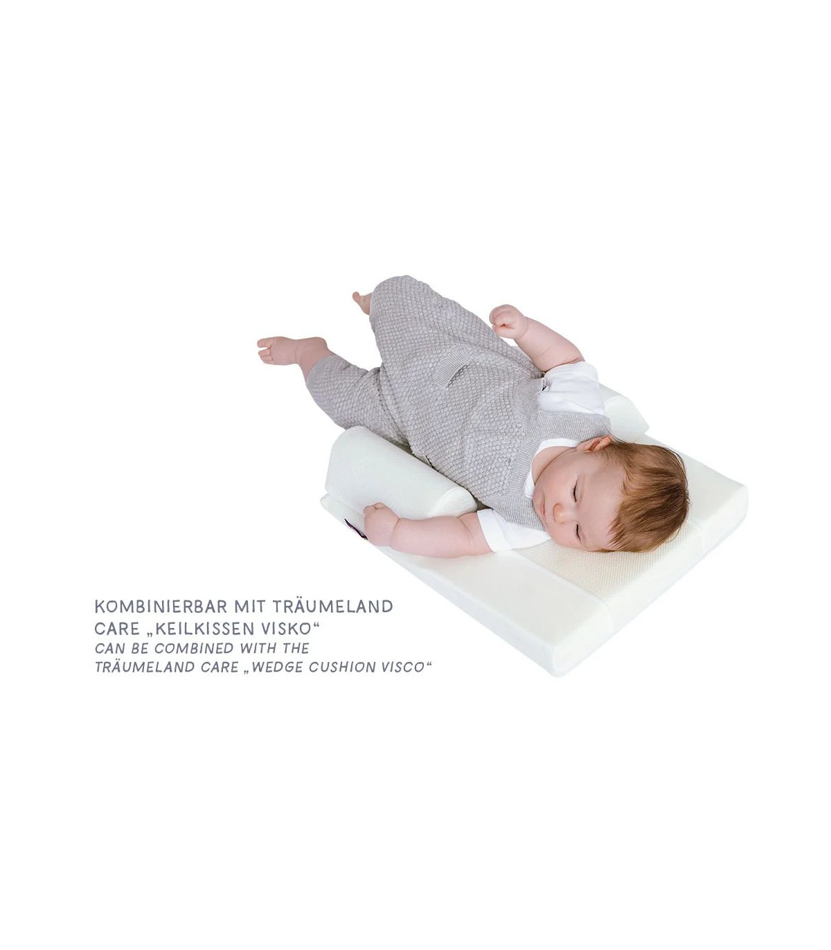 The Träumeland CARE side positioning set consists of 3 parts: The castors can be easily adjusted individually using the attached Velcro fastener and can be adapted to suit the size of the child. The wheels of the side positioning set can also be attached to the CARE VISCO wedge pillow, so both products can be combined with each other.