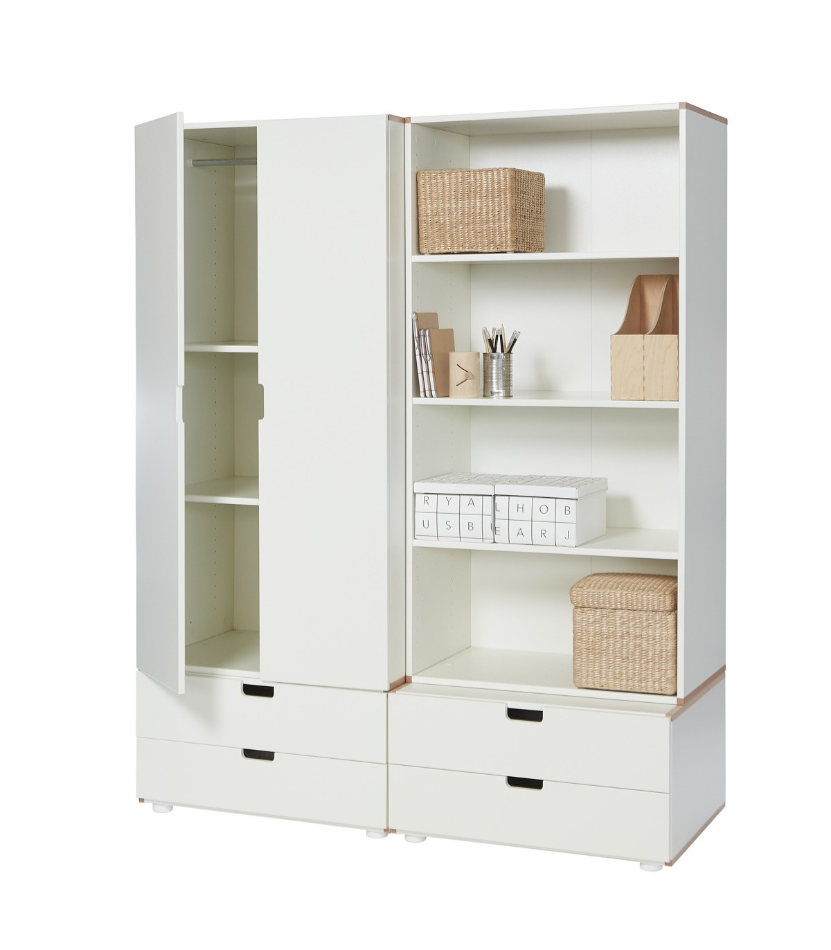 Combination with two chests of drawers, cabinet and shelf. Only the doors/fronts/rear panel are available in special colours.