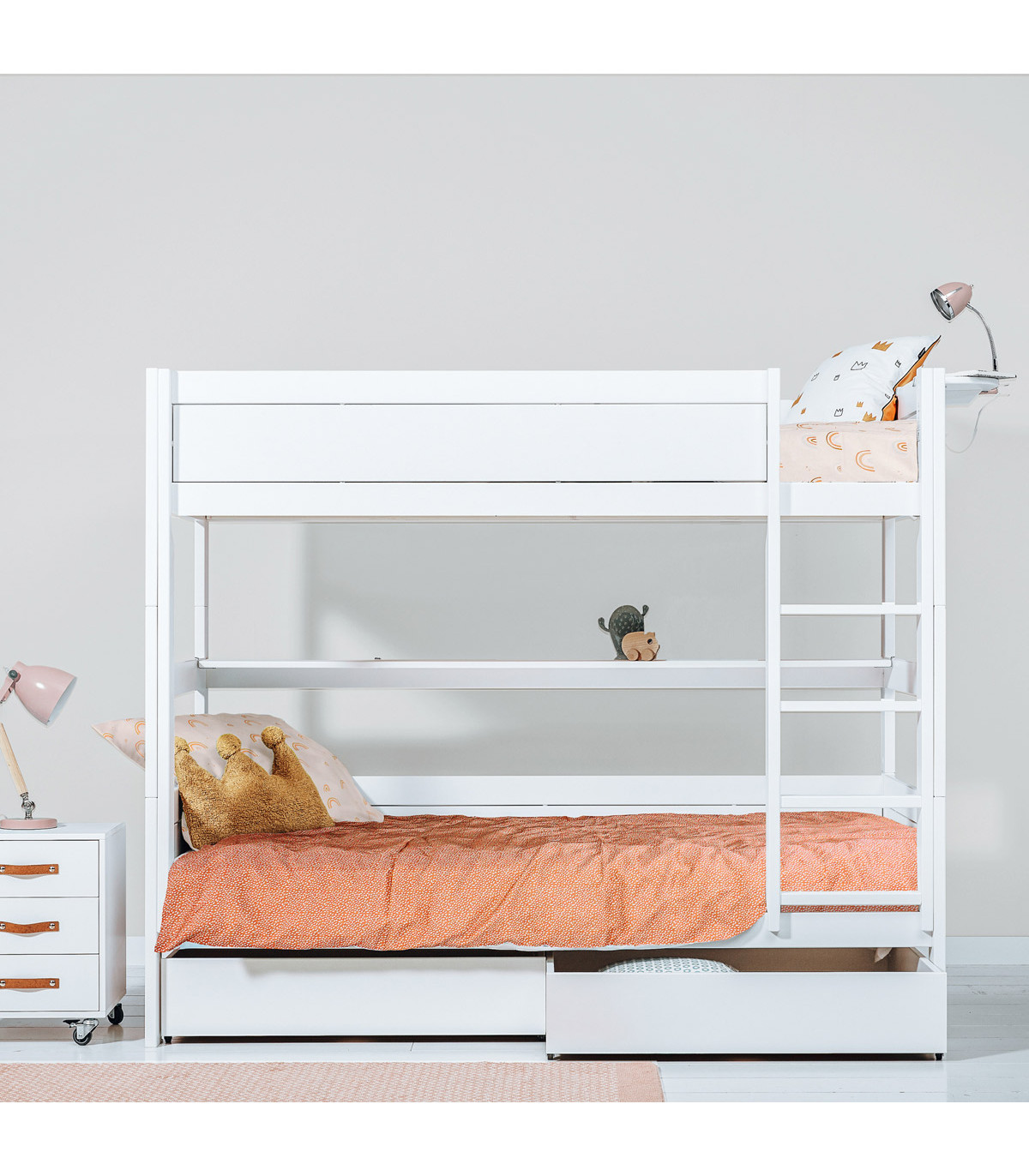 The classic bunk bed with the total height of 177 cm also offers enough space between the bed to sit upright. Between the bed you can also hang a practical book board Art. 252 or other practical accessories from the LIFETIME range. Climbing aids Art. 991 1 are also suitable for the ladder if the child needs further grip options here.