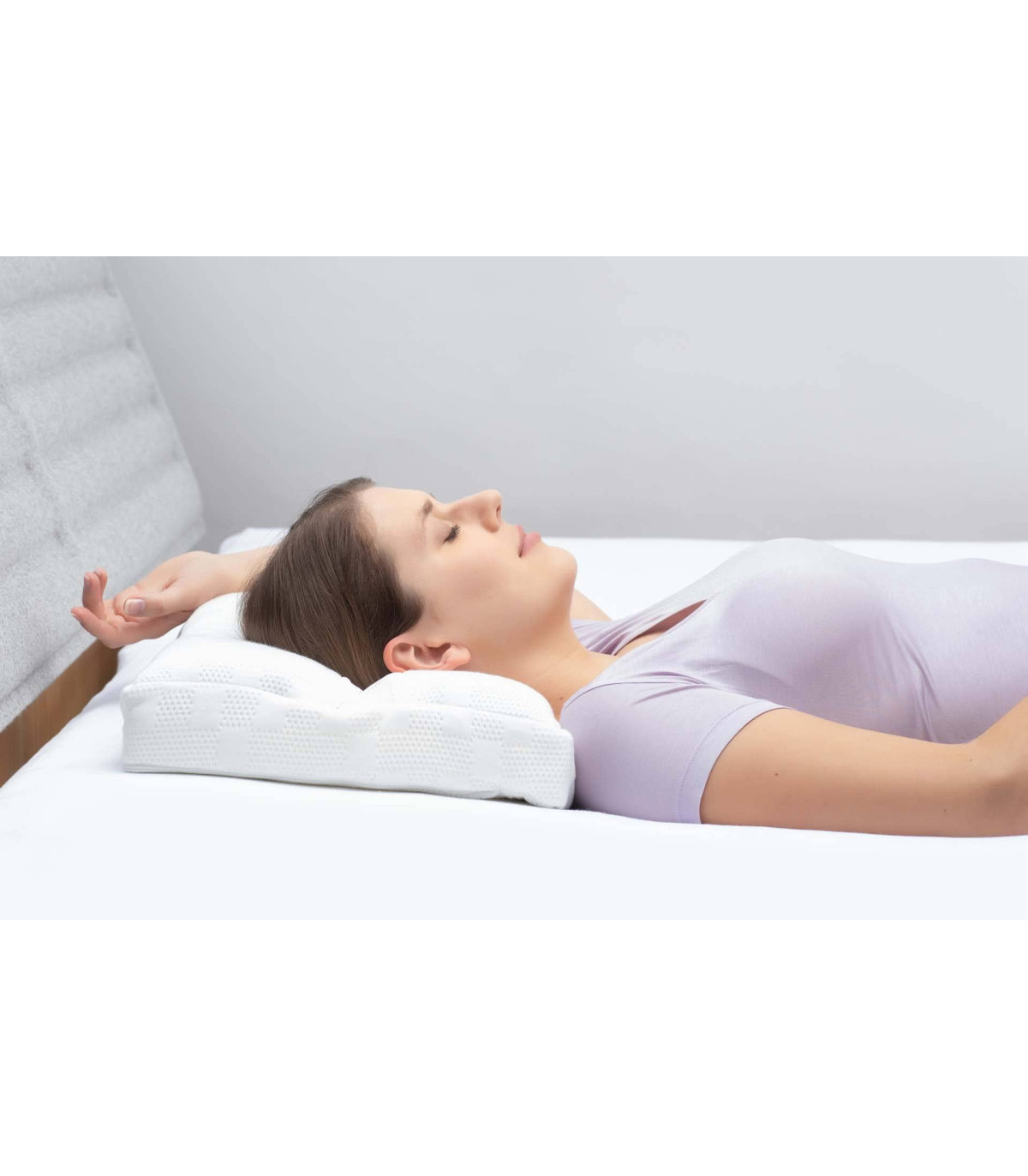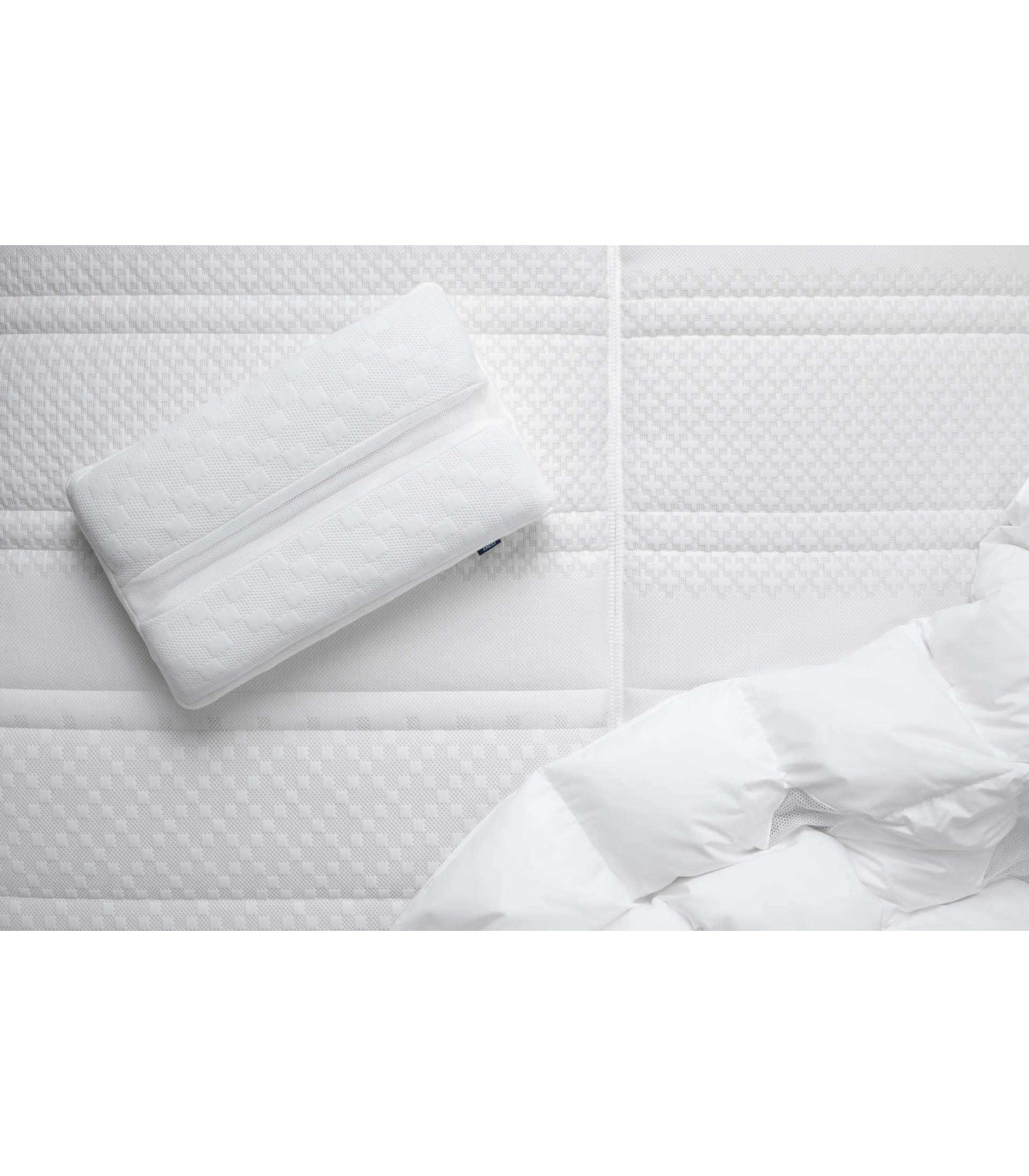 A breathable gel foam support pillow with a unique climate zone for optimum moisture and temperature equalisation. It relieves pressure on the head and supports the neck, and is height-adjustable for different body types and sleeping positions.