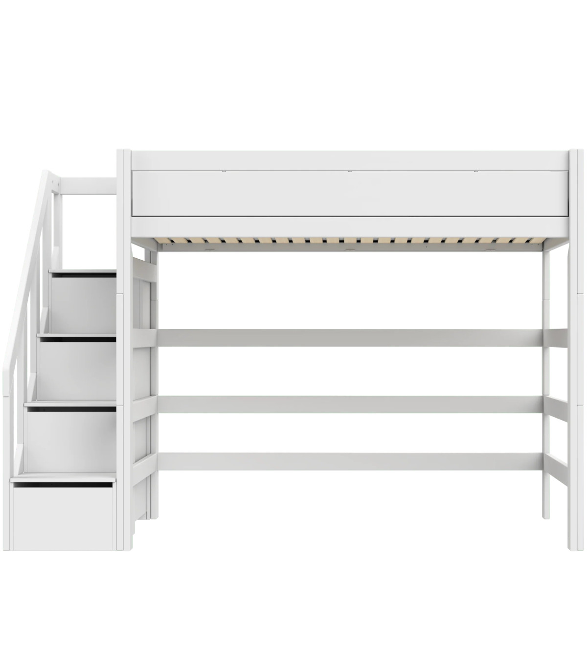 The staircase can be placed on either the right or left side of the bed, giving you greater flexibility when arranging the children's room. Additionally, the smart staircase doubles as storage, featuring spacious drawers in the steps and a shelf on the side.