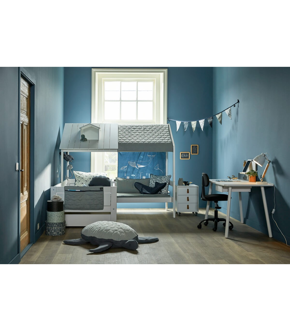 This bed combination is extremely practical, with a cozy bench where parents can sit comfortably while reading a bedtime story. Add the seat cushions and a cuddly roof cover to complete the look. Find all the options for seat cushions, mattresses, headliners and much more in the 3D design tool and create the bed you dreamed of.