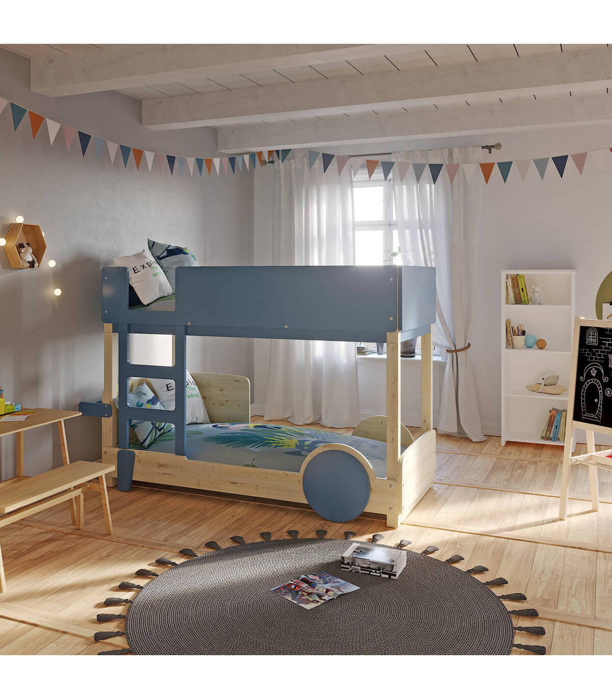 The Discovery bed offers a cocoon area where the child can snuggle and fall asleep safely. Thus, a shelf is designed in the front of the bed and can support a bedside lamp nearby for example. To store the teddy bears, a toy box is designed near the bed. Everything is suitable for the child in order to make his own area, his cocoon, his home.