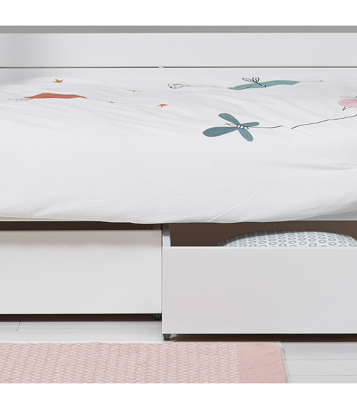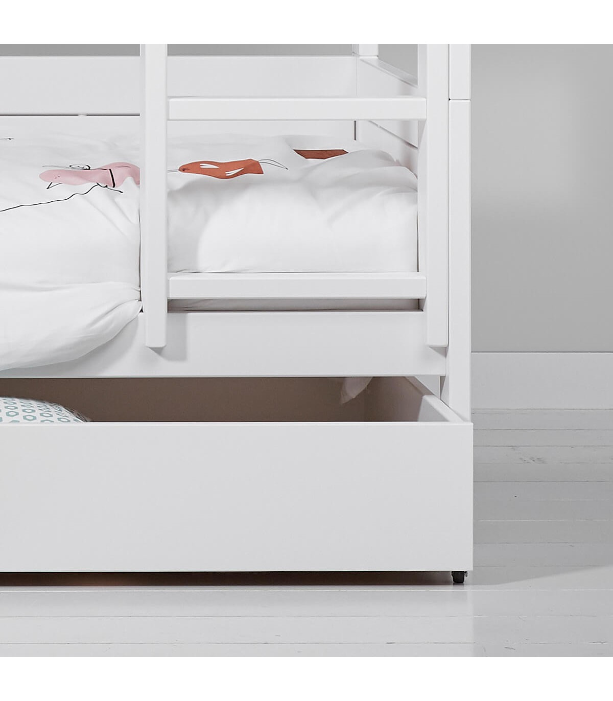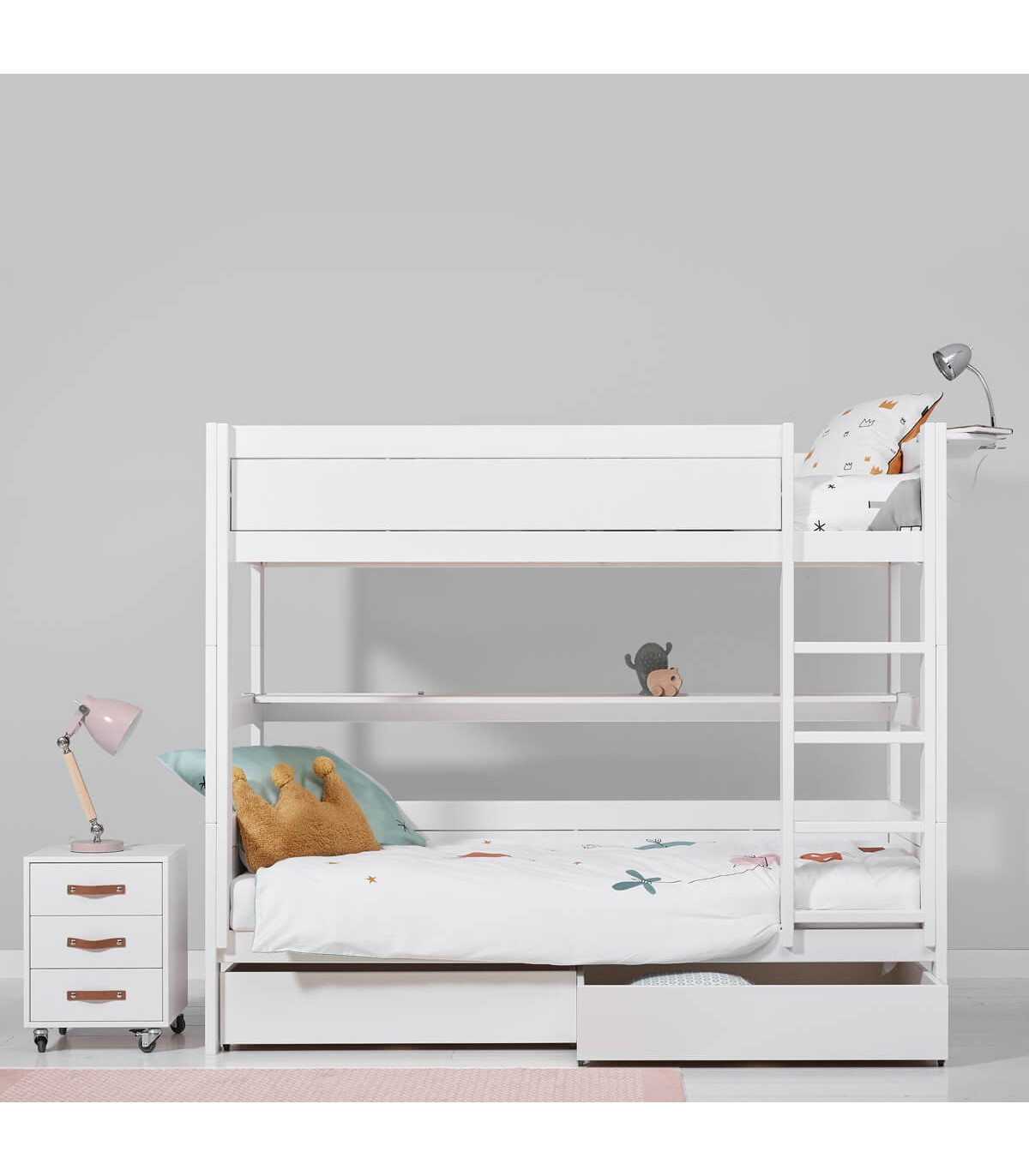 Lit superposé Lifetime Kombi 1 avec plancher à rouleaux et deux tiroirs Blanc