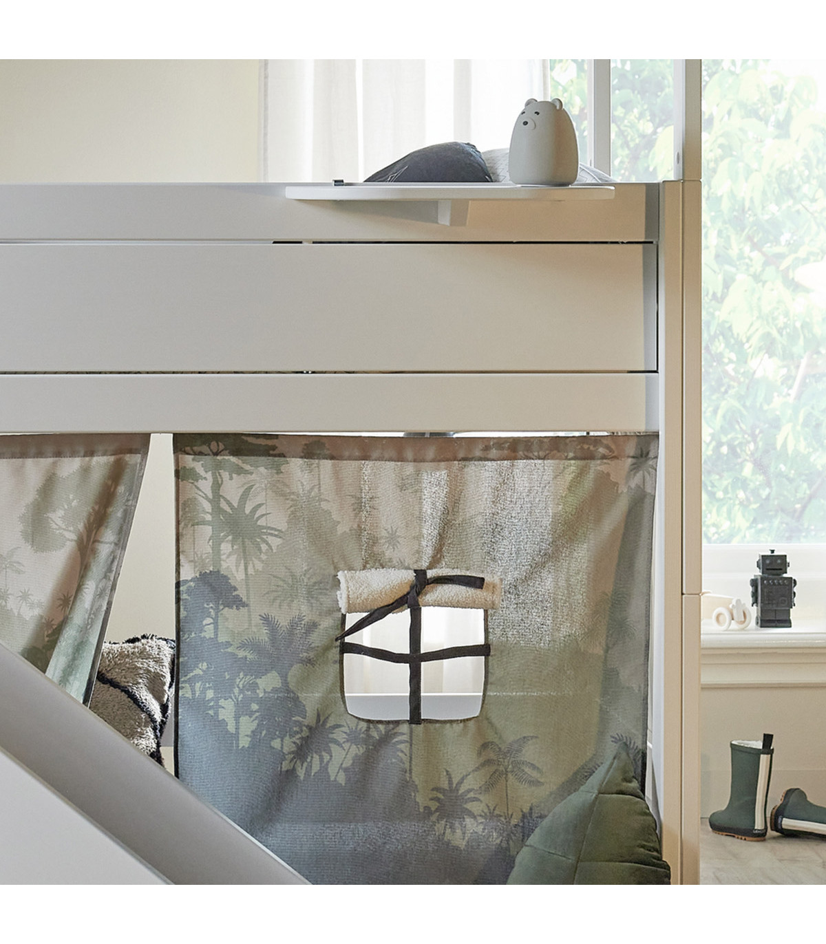 • Cocon douillet : Un lit avec toit en tissu au sol, parfait pour les petits explorateurs.