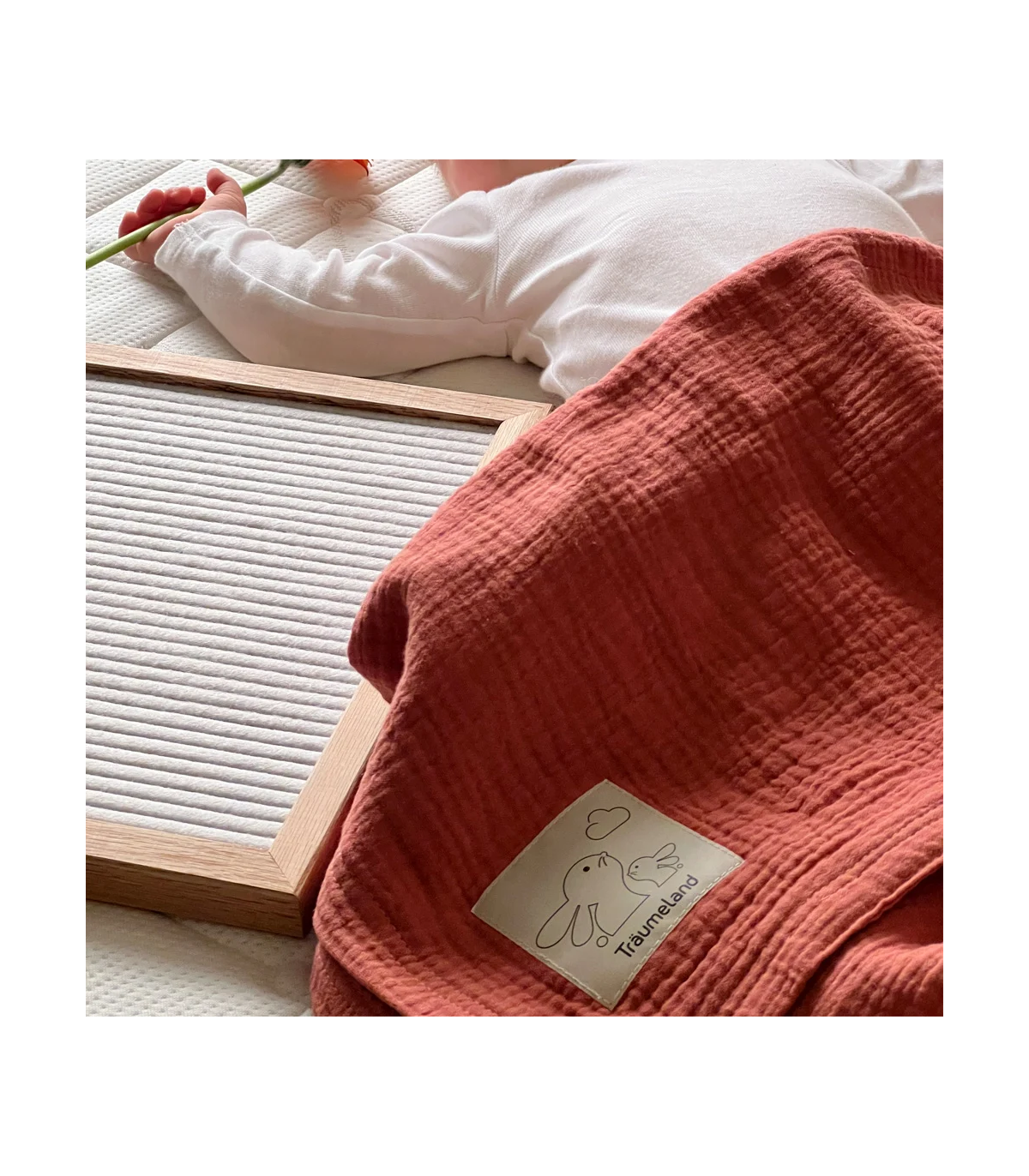 La douce mousseline de coton dans la nuance chaude de l'abricot caractérise cette couverture pour bébé merveilleusement moelleuse. Grâce à sa légèreté, elle peut être utilisée de manière polyvalente, que ce soit comme couverture douillette, comme support moelleux, comme tissu d'allaitement pratique ou comme protection solaire efficace. Les options de couleurs tendance confèrent à la couverture un look attrayant, tandis que sa texture agréable assure confort et sécurité.