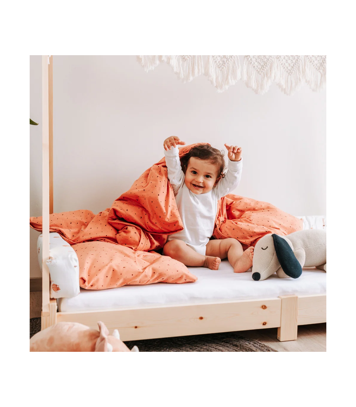 Cet ensemble de deux pièces est particulièrement doux et moelleux sur la peau de bébé. La housse de couette est dotée d'une fermeture éclair pratique au pied, tandis que la taie d'oreiller est équipée d'une fermeture à l'hôtel qui permet de l'ouvrir et de la retirer facilement.