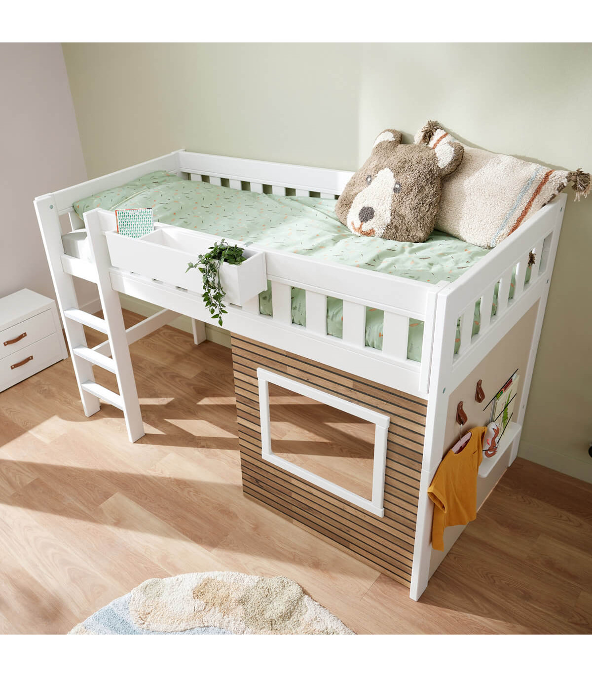 Le LIT 2023 LIMITED EDITION possède également les caractéristiques durables de LIFETIME Kidsrooms®, car il peut être converti à une hauteur de lit de base classique si l'enfant se désintéresse du lit à mi-hauteur ou de la maison de jeu sous le lit. De cette manière, le lit peut durer de nombreuses années.