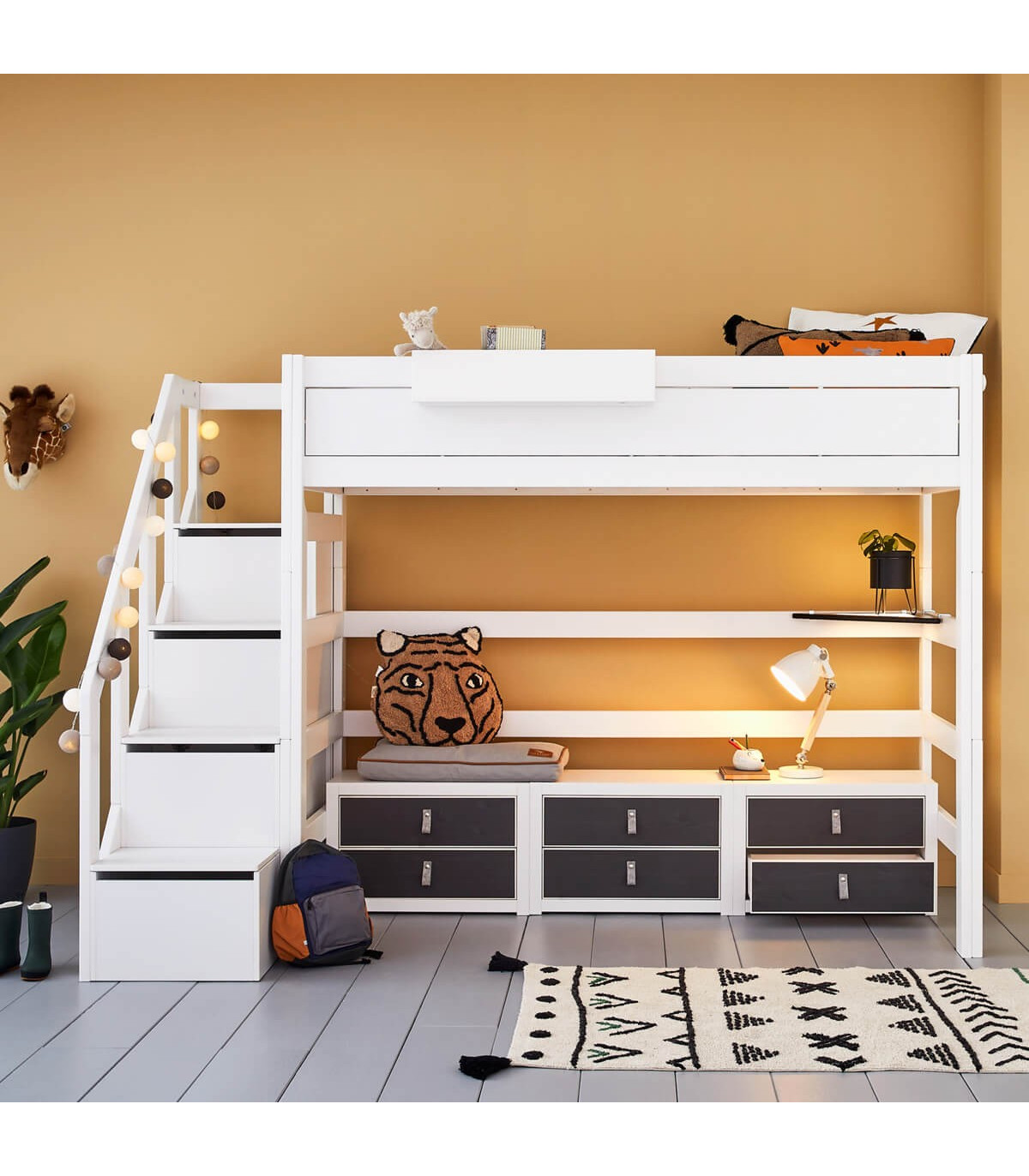 Lit mezzanine Lifetime avec escalier et sommier combo blanc