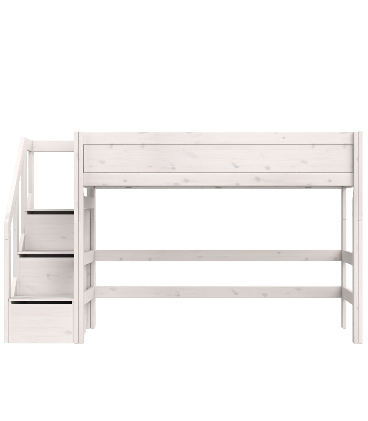 Lifetime Lit mezzanine 152 x 257 x 102 cm avec escalier step et sommier, whitewash