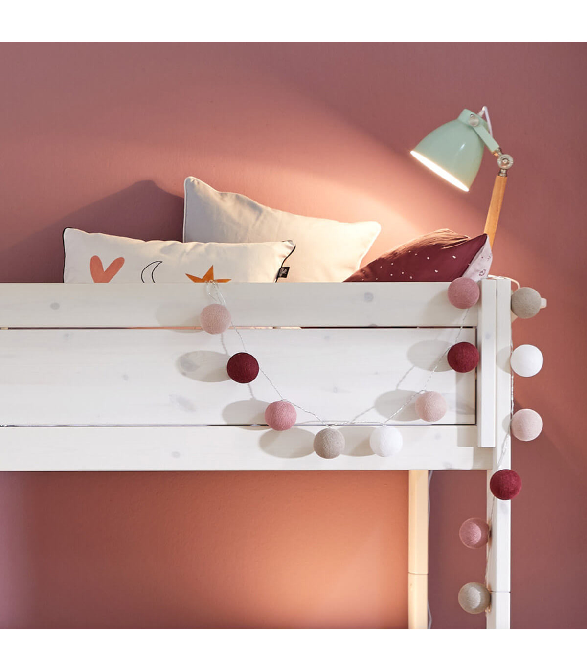 Ce grand lit superposé avec entrée d’escalier, lit inférieur 90 x 200 cm, lit supérieur 90 x 200 cm de LifeTimes-Kidsrooms est la possibilité de couchage idéale dans les petits appartements et / ou dans la maison de vacances. Il offre intelligemment beaucoup d’espace pour dormir dans un espace confiné et se compose des composants suivants: