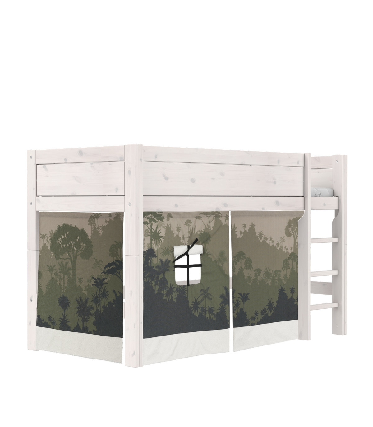 Le lit mi-hauteur offre beaucoup d’espace sous le lit pour la salle de jeux, le stockage, la lecture, etc. Il y a aussi un certain nombre de rideaux de jeu pour ce lit pour créer une grotte en dessous. L’échelle droite prend moins de place dans la pièce que l’échelle en pente.